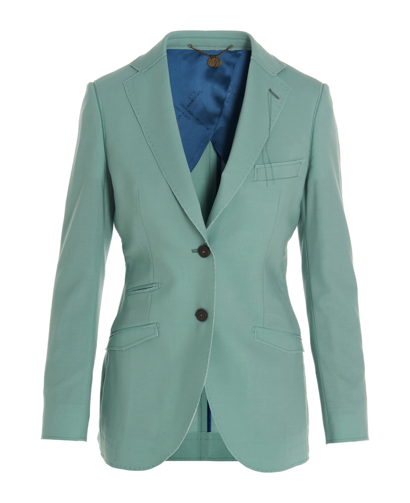 Single breast blazer jacket featuring a button closure, pockets, long sleeves, back splits, a raw cut detail and all over packing. Composition: 98% wool 2% elastane