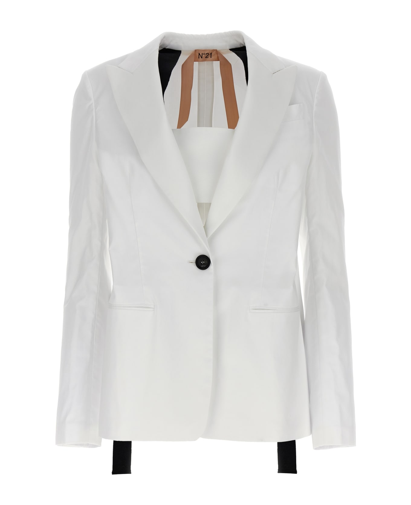 Single breast cotton blazer with button closure, pockets, long sleeves, shoulder pads and a back split. Composition: 100% cotton