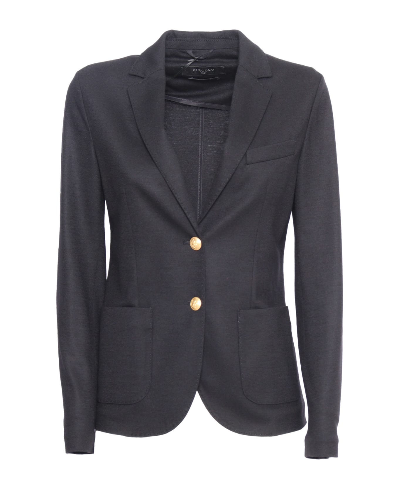 Virgin wool and cashmere jacket, single-breasted, gold-finish buttons, lapel collar, patch pockets
