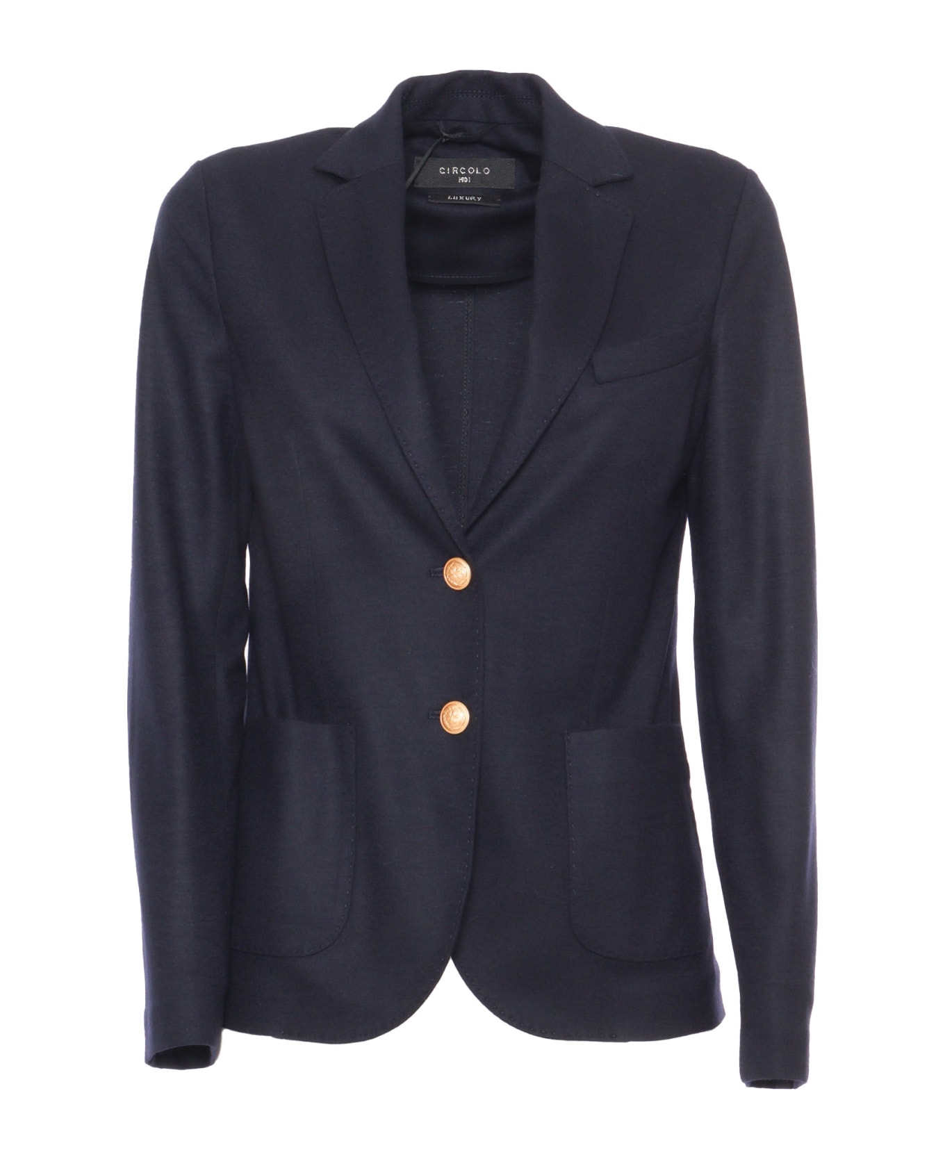 Virgin wool and cashmere jacket, single-breasted, gold-finish buttons, lapel collar, patch pockets, slim fit