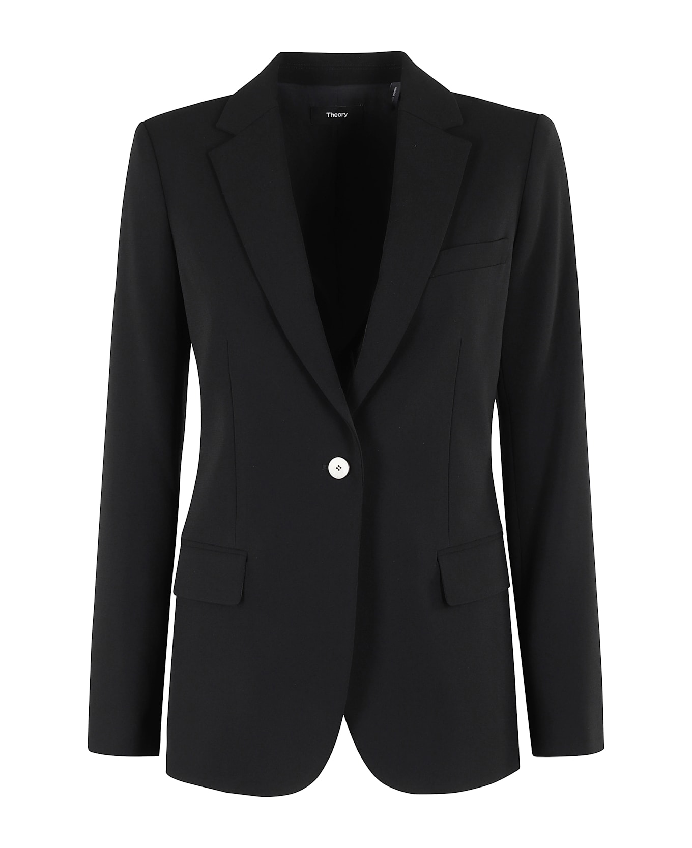 Staple Admiral jacket - Theory - black color - classic lapels - single button front closure - side gusset pockets - top breast pocket - button cuffs - regular fit