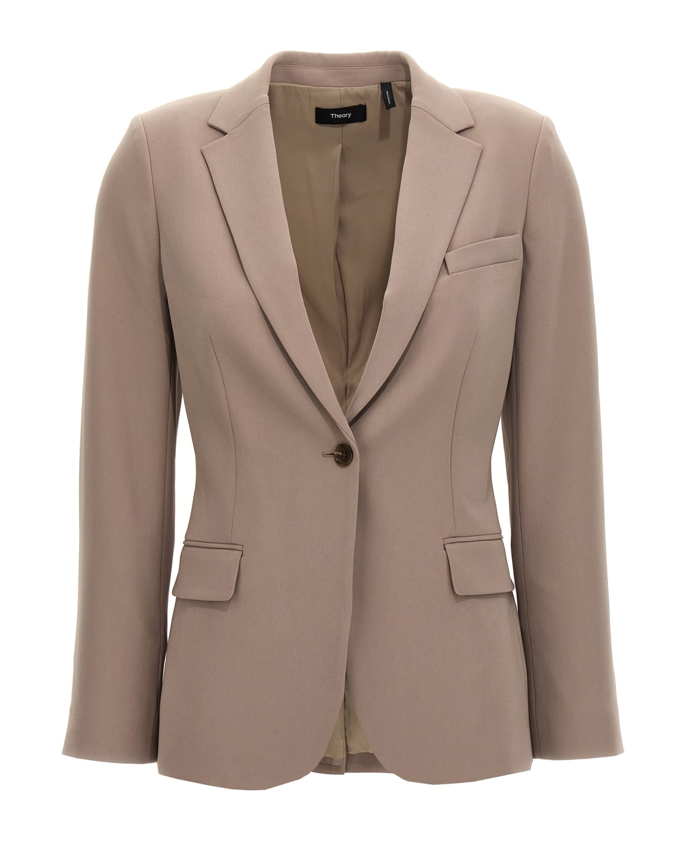 'Staple' single-breasted acetate blazer with button closure, pockets, long sleeves, back vent.