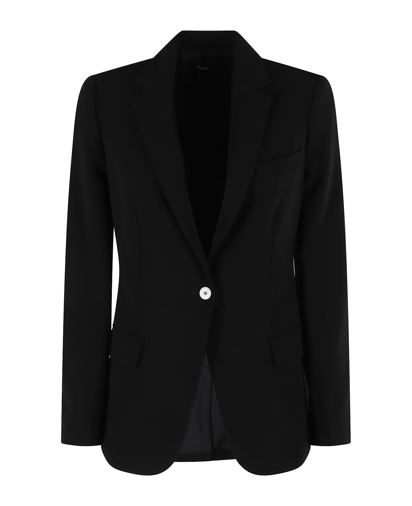 Blazer straple - Theory - Black color - Crepe fabric - Reverse collar - Single breasted front button closure - Long sleeves - Flap side pockets.