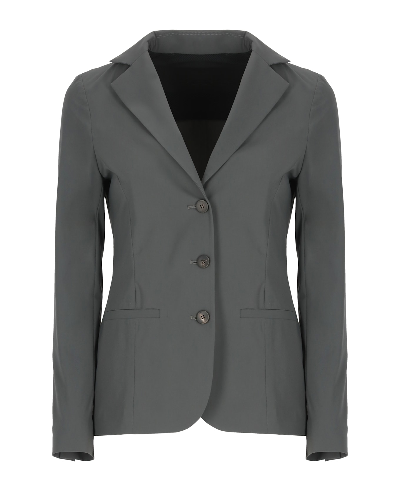 - Grey RRD Roberto Ricci Design blazer for woman - Classic lapel collar - Front buttons fastening - Long sleeves with buttons - Two front welt pockets - One rear vent at hem Composition: 79% Polyamide, 21% Elastane Inside:, 90% Polyamide, 10% Elastane