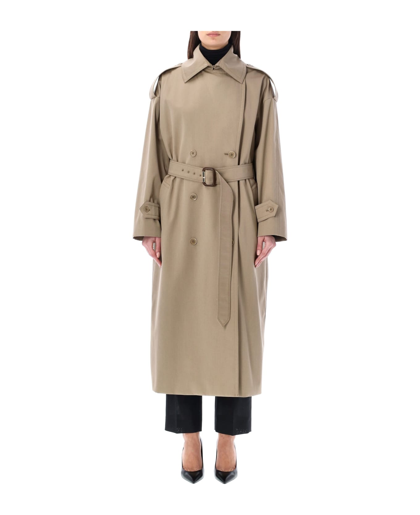 Trench Coat By Max Mara. Featuring: Pointed Collar Raglan Sleeves Welt Pockets Center Back Vent Double-breasted Button Closure Matching Belt With Buckle Model Is 1,72 M And Wears Size 40