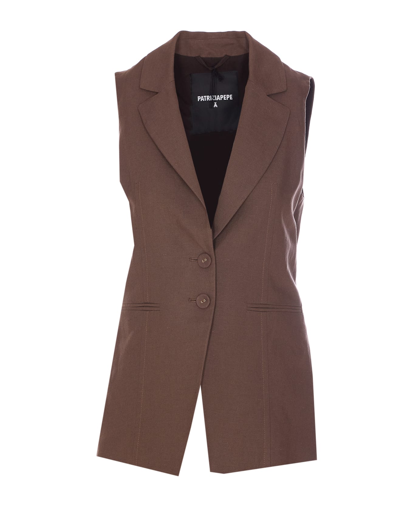 Patrizia Pepe brown vest with frontal buttons closure, V-neck, sleeveless