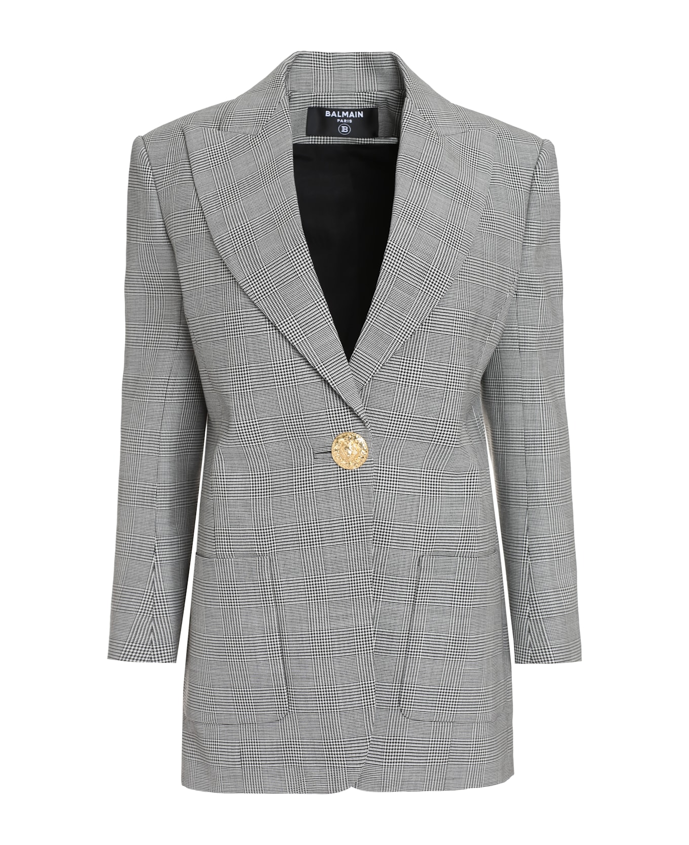 Prince of wales check one button fastening lapel collar padded shoulders embellished buttons back slit hem 100% virgin wool Composition: 100% % Virgin Wool