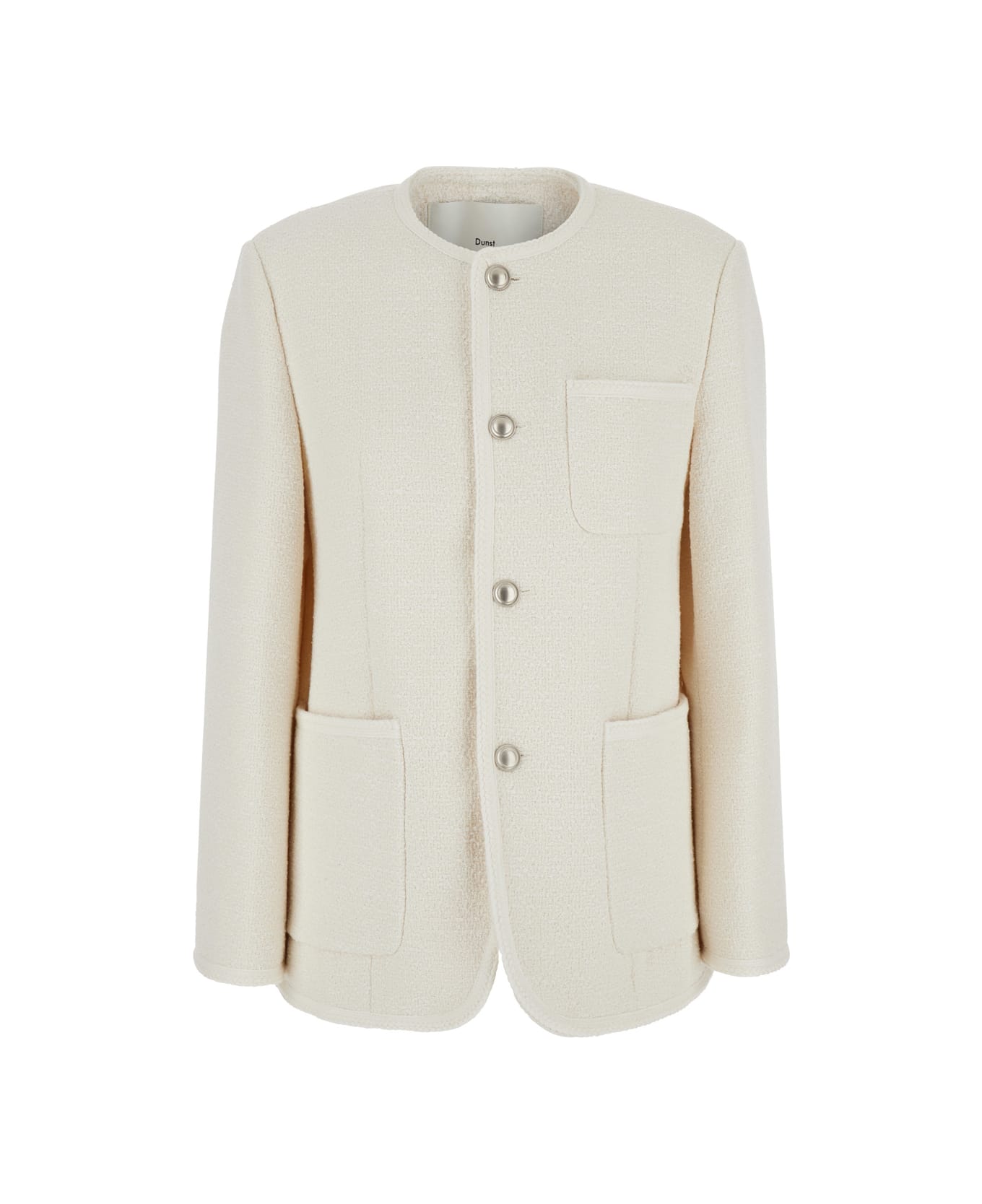 White Oversize Collarless Jacket In Cotton Blend Woman