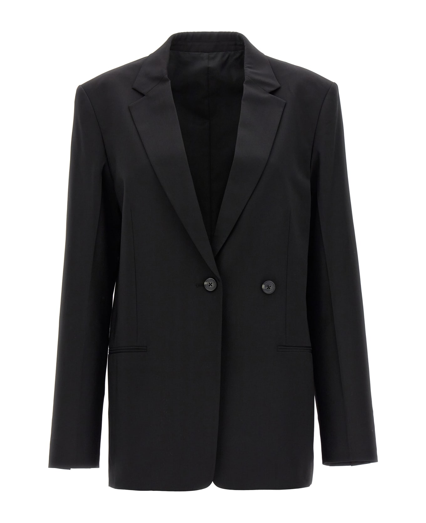 Single breast wool blend blazer jacket featuring a button closure, pockets, long sleeves, back split, slightly padded shoulders. Composition: 53% polyester 43% wool 4% elastane