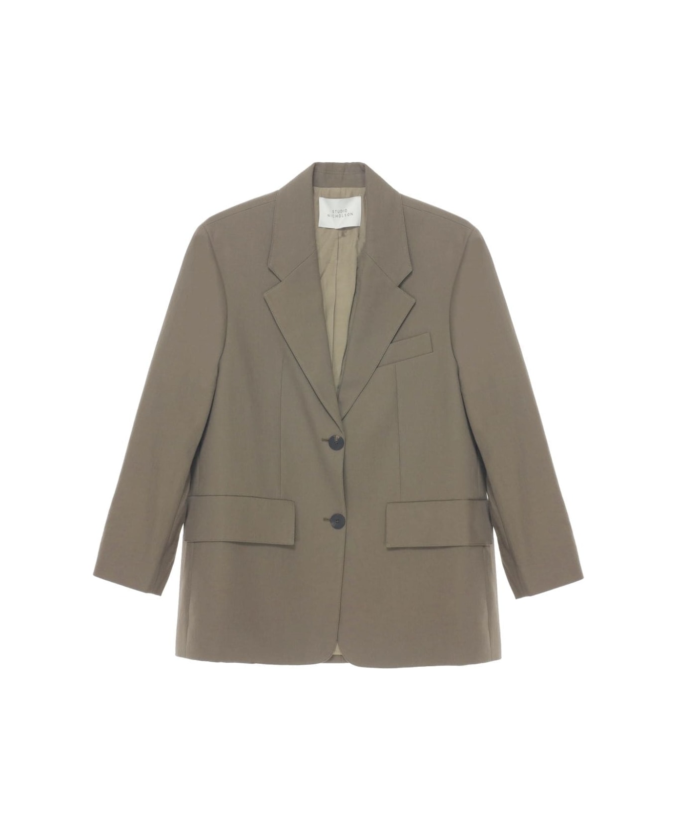 taupe brown cotton blend front button fastening notched lapels chest welt pocket front flap pockets long sleeves straight hem
