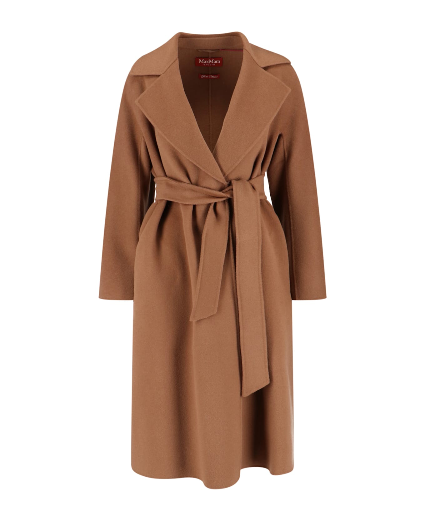 Max Mara Cles coat in brown virgin wool, silk and cashmere, classic lapels, adjustable belt at the waist, two side pockets, and straight hem. Composition: 88% Virgin Wool, 6% Silk, 6% Cashmere