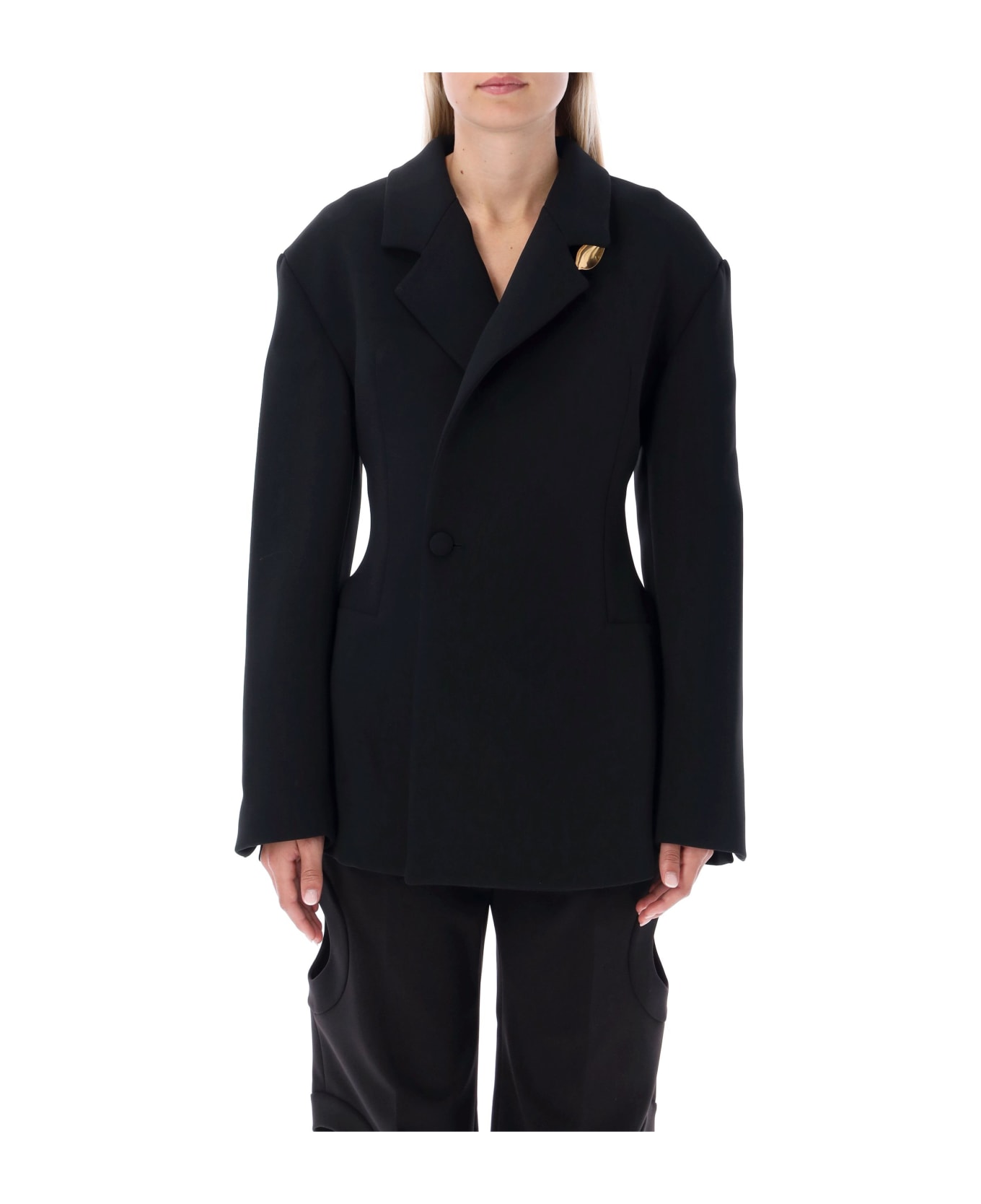 Back Cut-out And Spoon Brooch Fitted Blazer