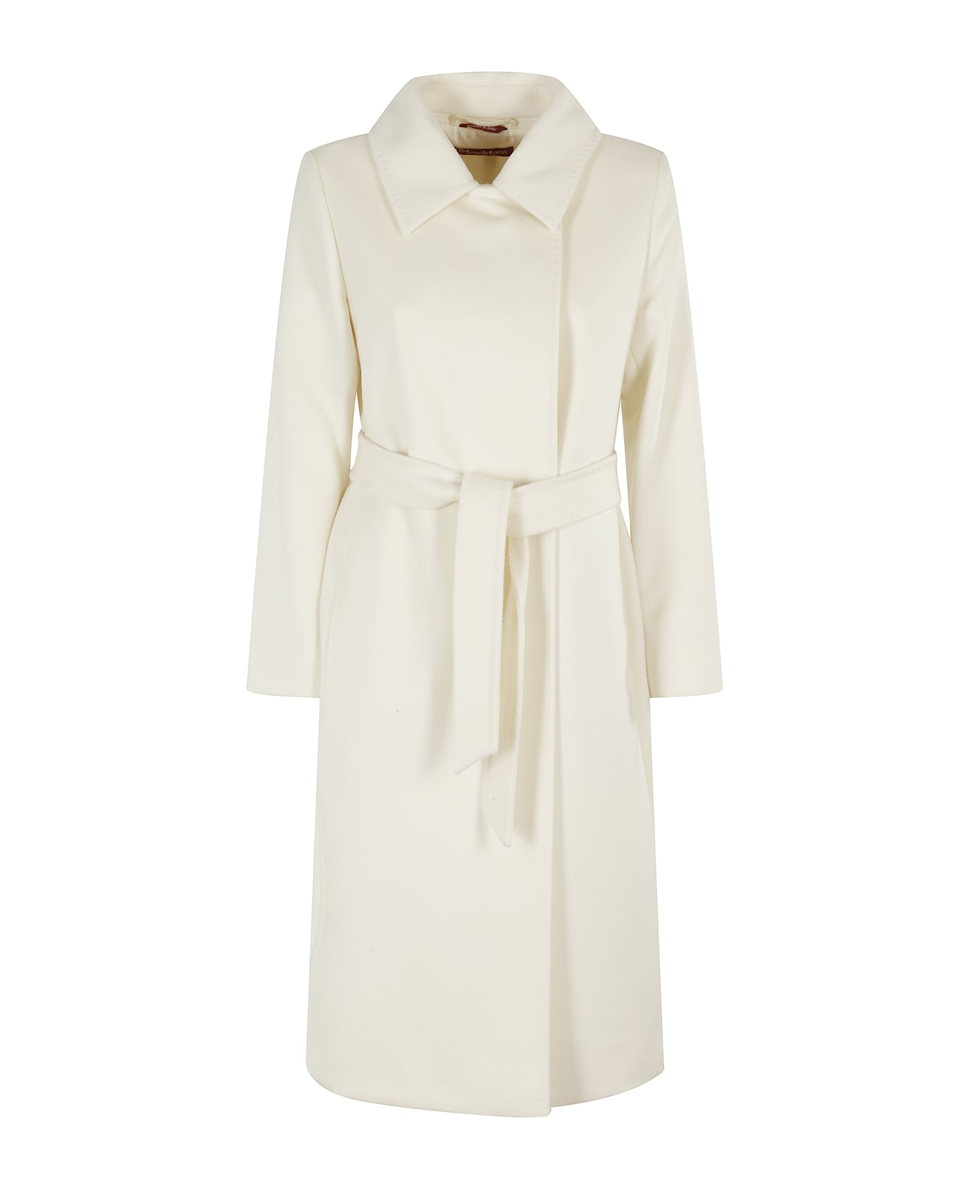 BCollag coat -Max Mara Studio -White color -Long sleeve -Center closure -Side pockets -Split at back -Belt at waist