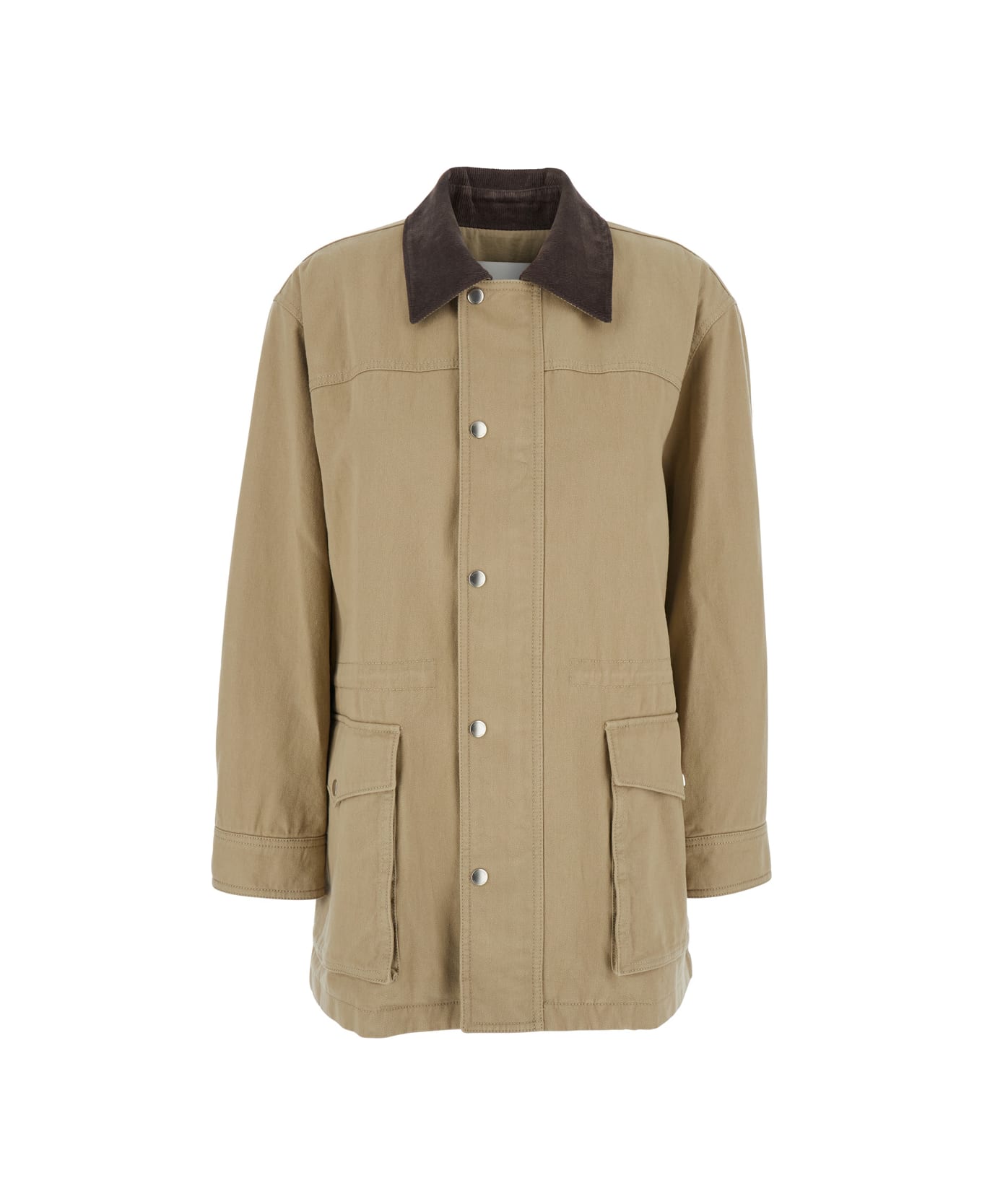 Beige Jacket With Corduroy Collar And Front Snap Button Closure In Cotton Woman