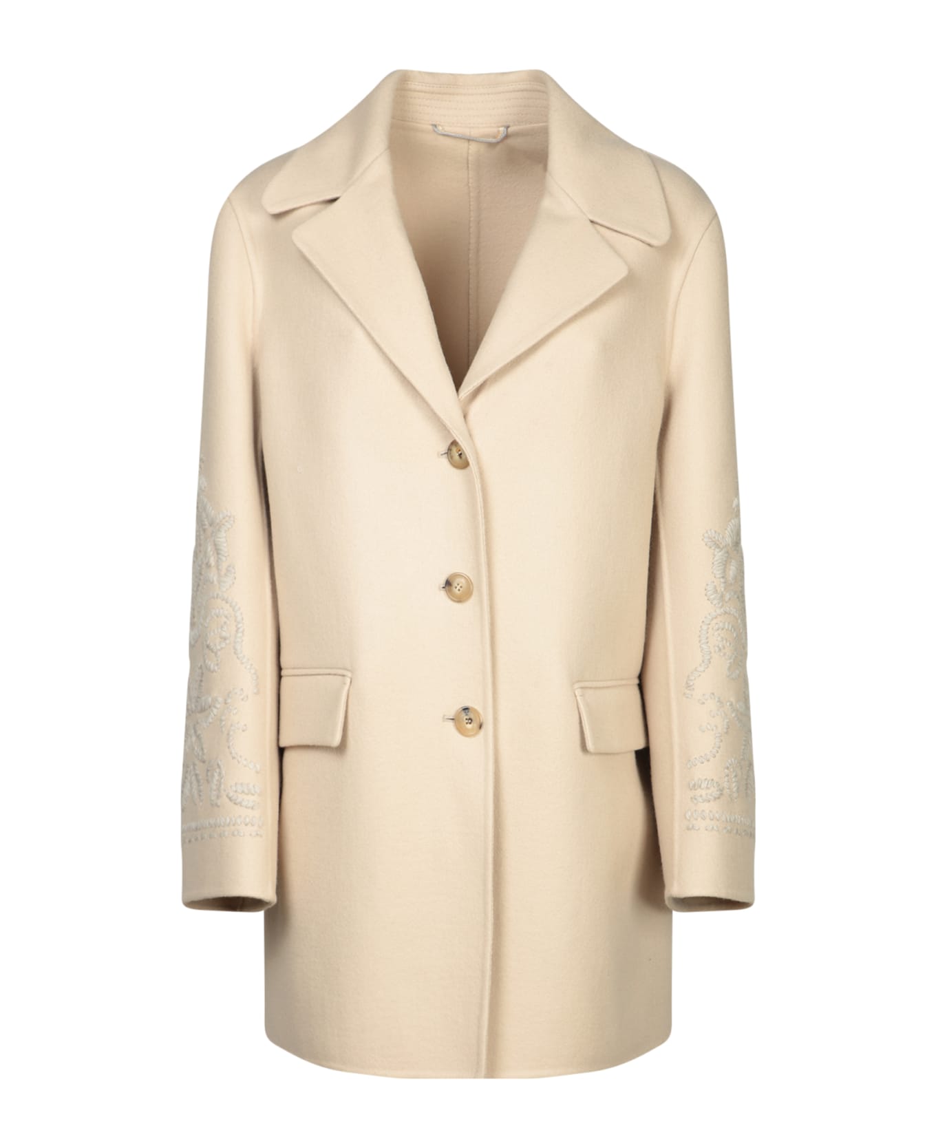 Beige Single-breasted Embroidered Coat