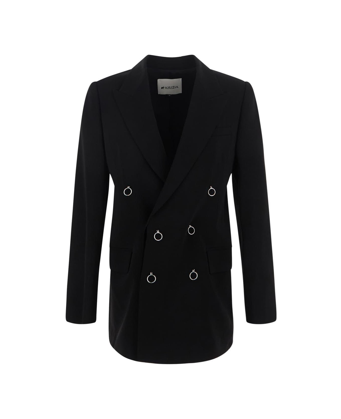 K Krizia jacket in black viscose with long sleeves. The item is featured by V-neck, buttons closure and silver-tone hardware.