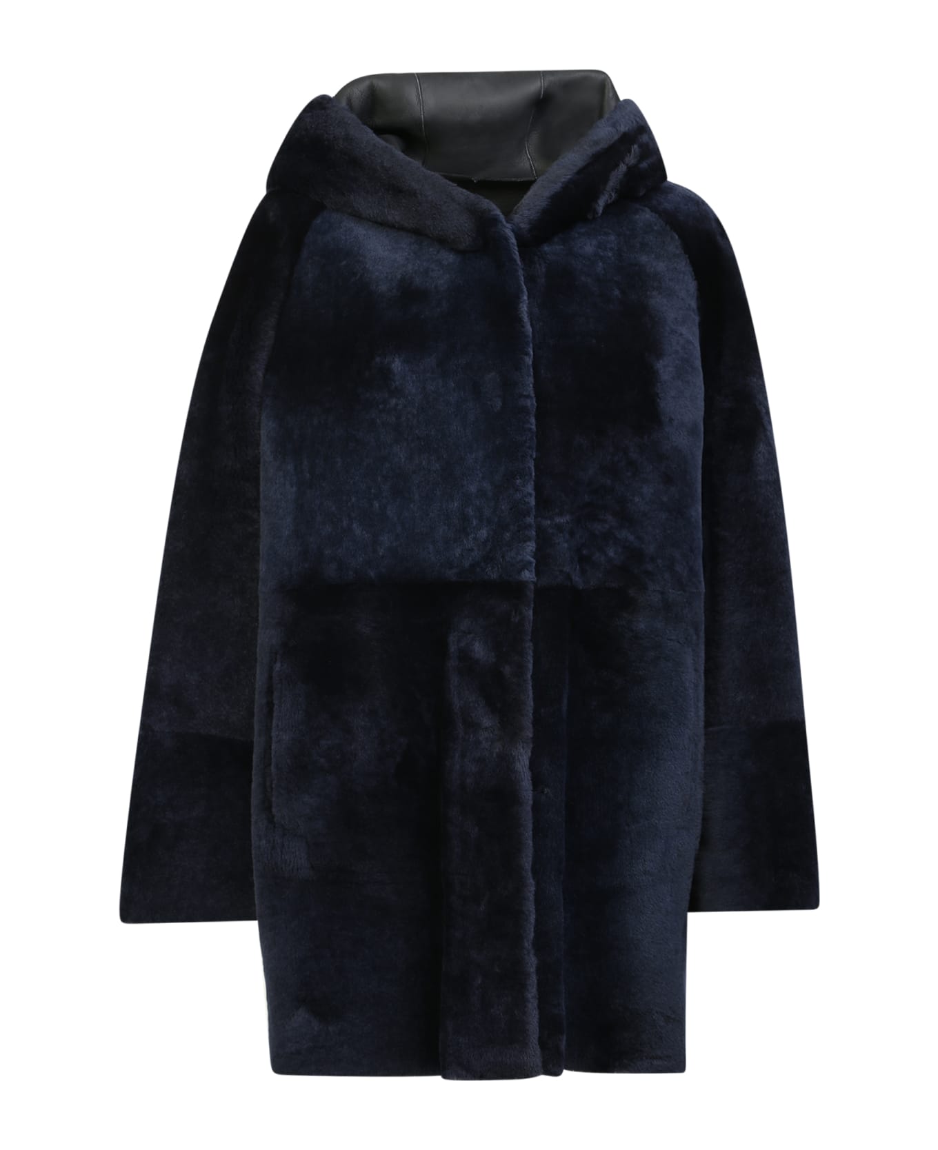 Reversible. Classic hood. Long sleeves. Front press-stud button fastening. Two side pockets. Color: blue