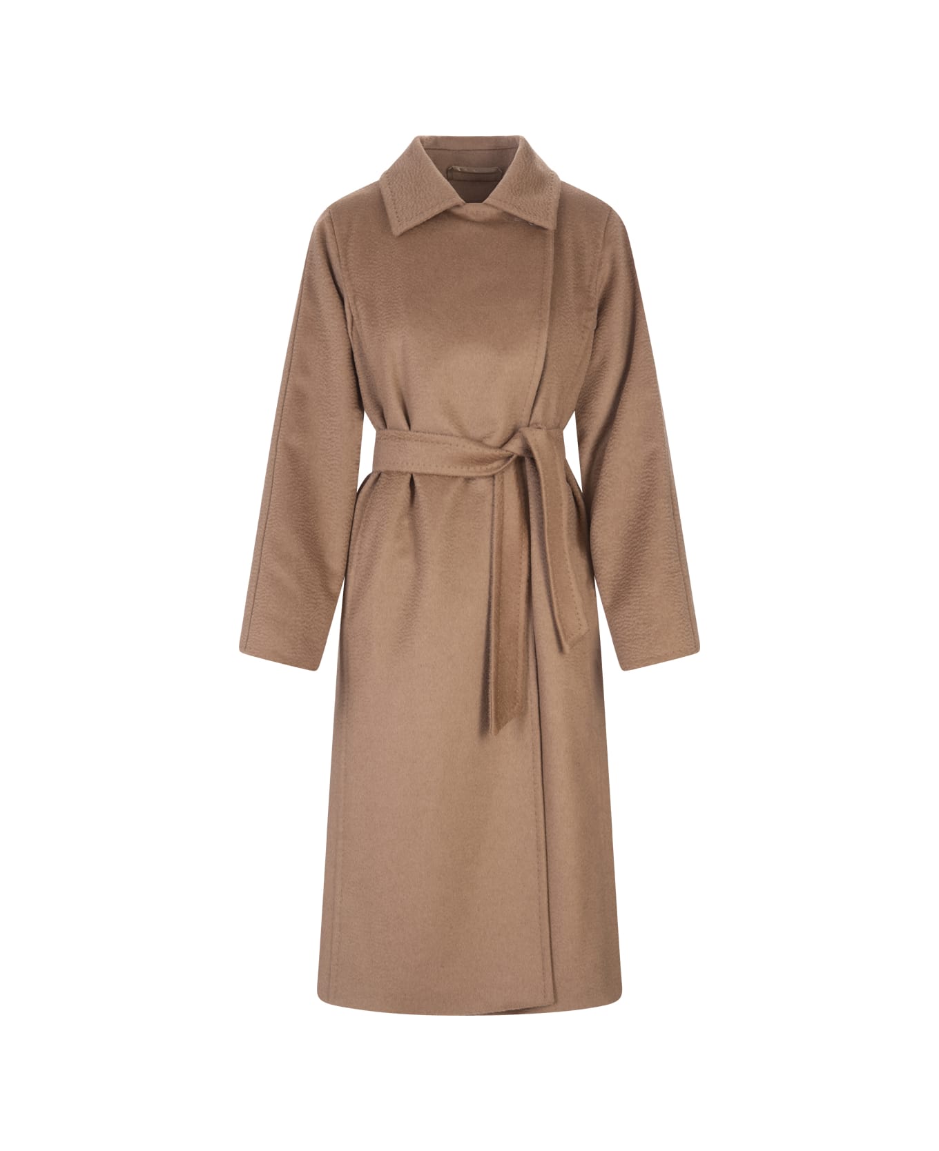 Women's 3manuel long coat by Max Mara made of pure zibellined camel drap and featuring a robe design, lapel collar, long sleeves, matching detachable belt, side pockets and central rear vent. Composition: 100% Camel