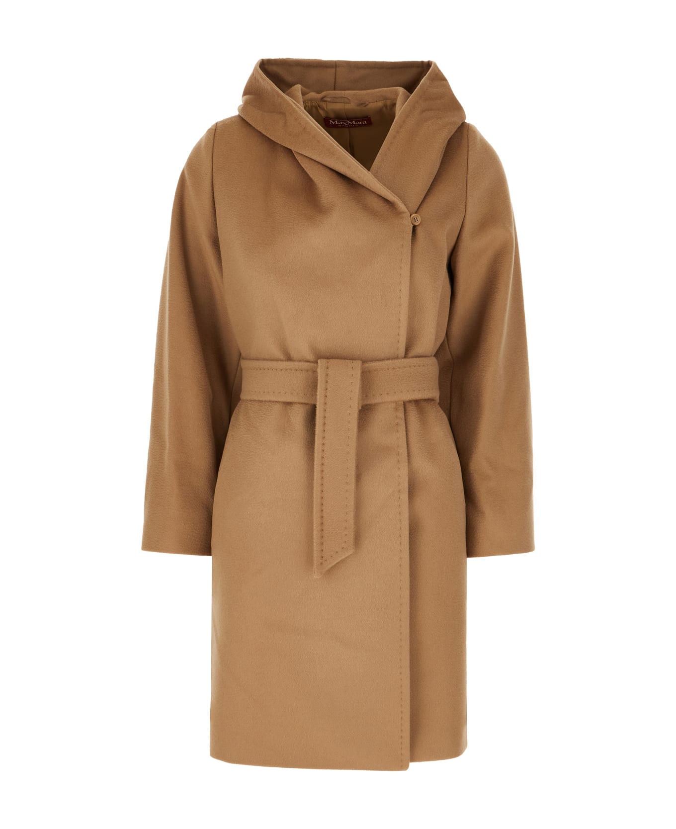 Coat realized in pure virgin wool enriched by detachable tonal fabric belt at the waist. -Hood -Concealed hook closure -Two slit pockets -Lined Composition: Exterior: 100% Virgin wool Lining: 100% Viscose