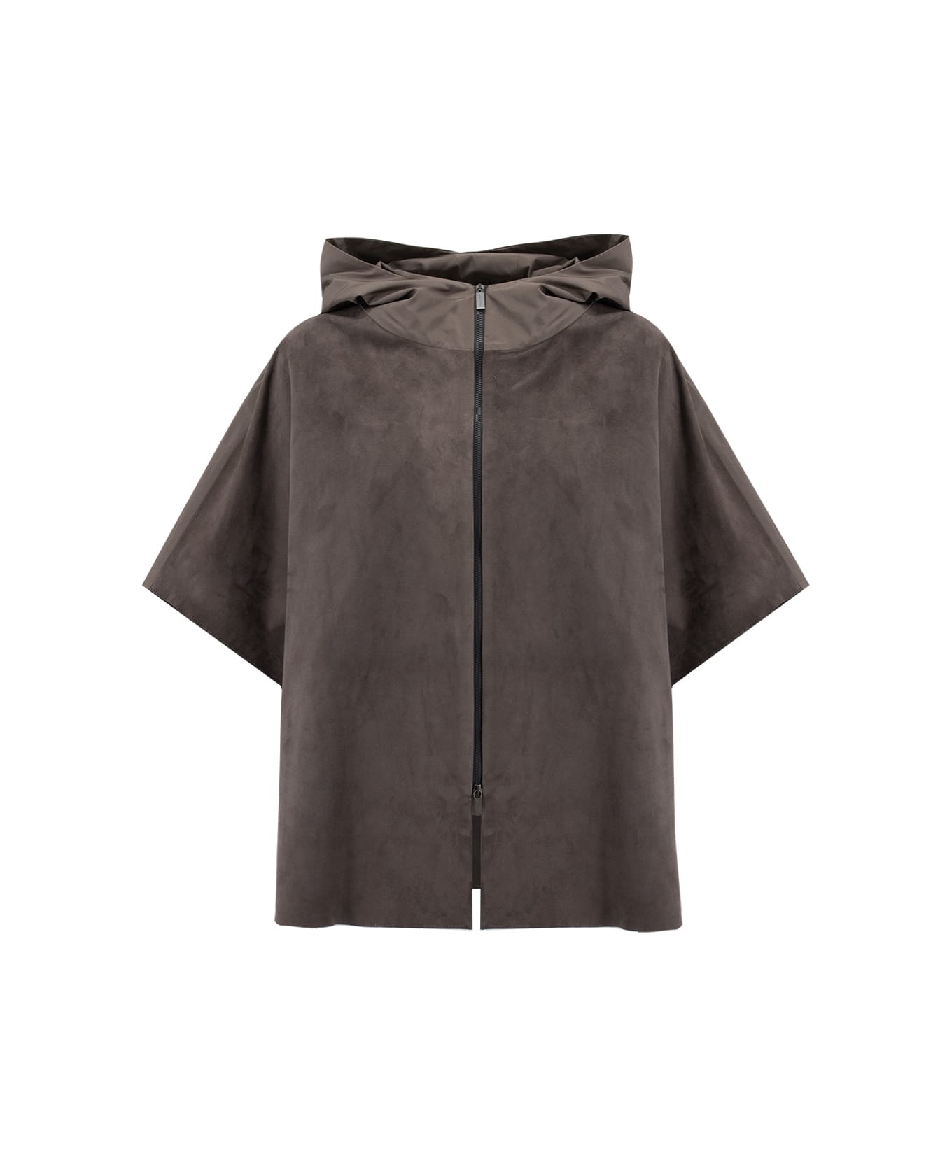 Suede cape, characterised by hood and back in technical taffeta, two-way zip fastening, over fit. Composition: 100% REAL, SUEDE