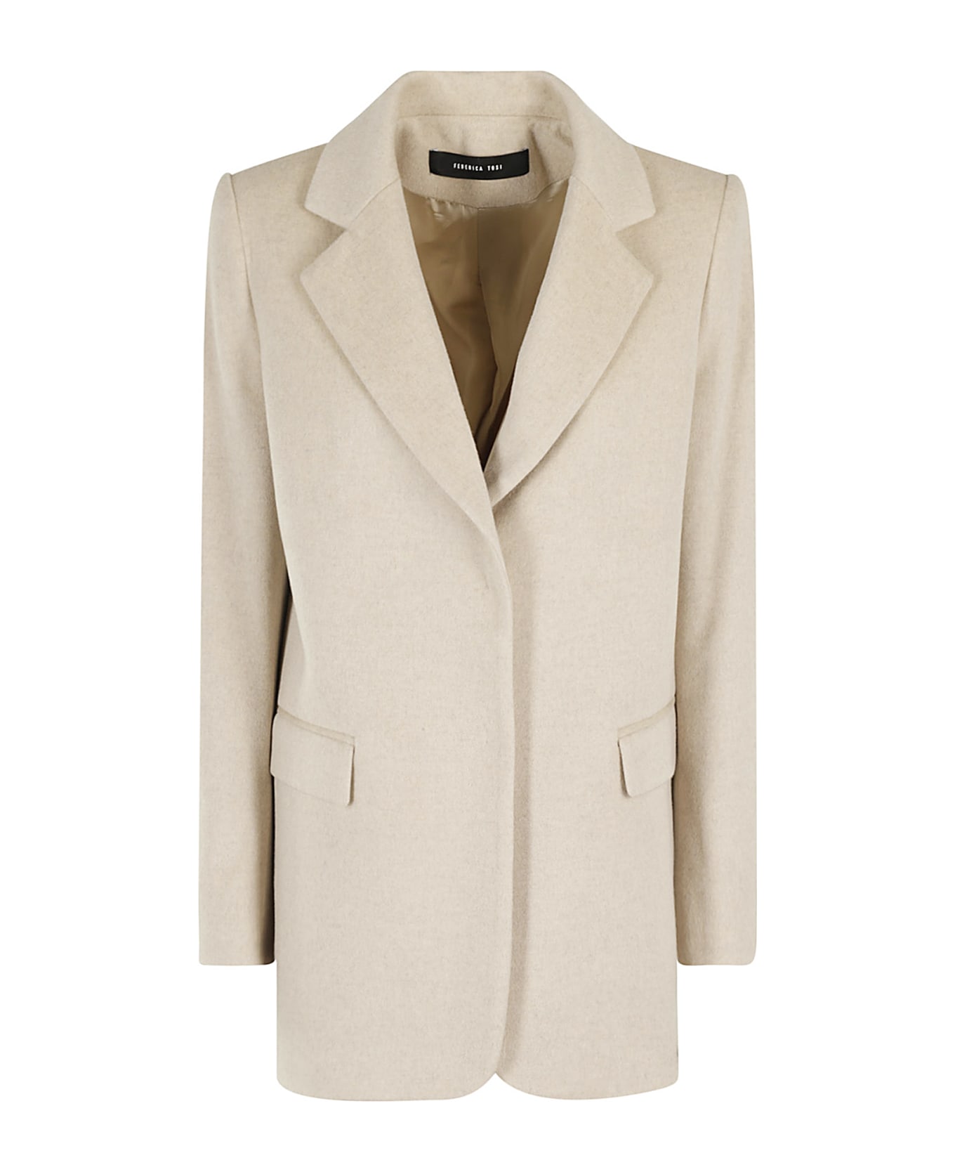 Short coat - Federica tosi - Cream - Single-breasted closure with concealed snap buttons - Pointed lapels - Front flap pockets