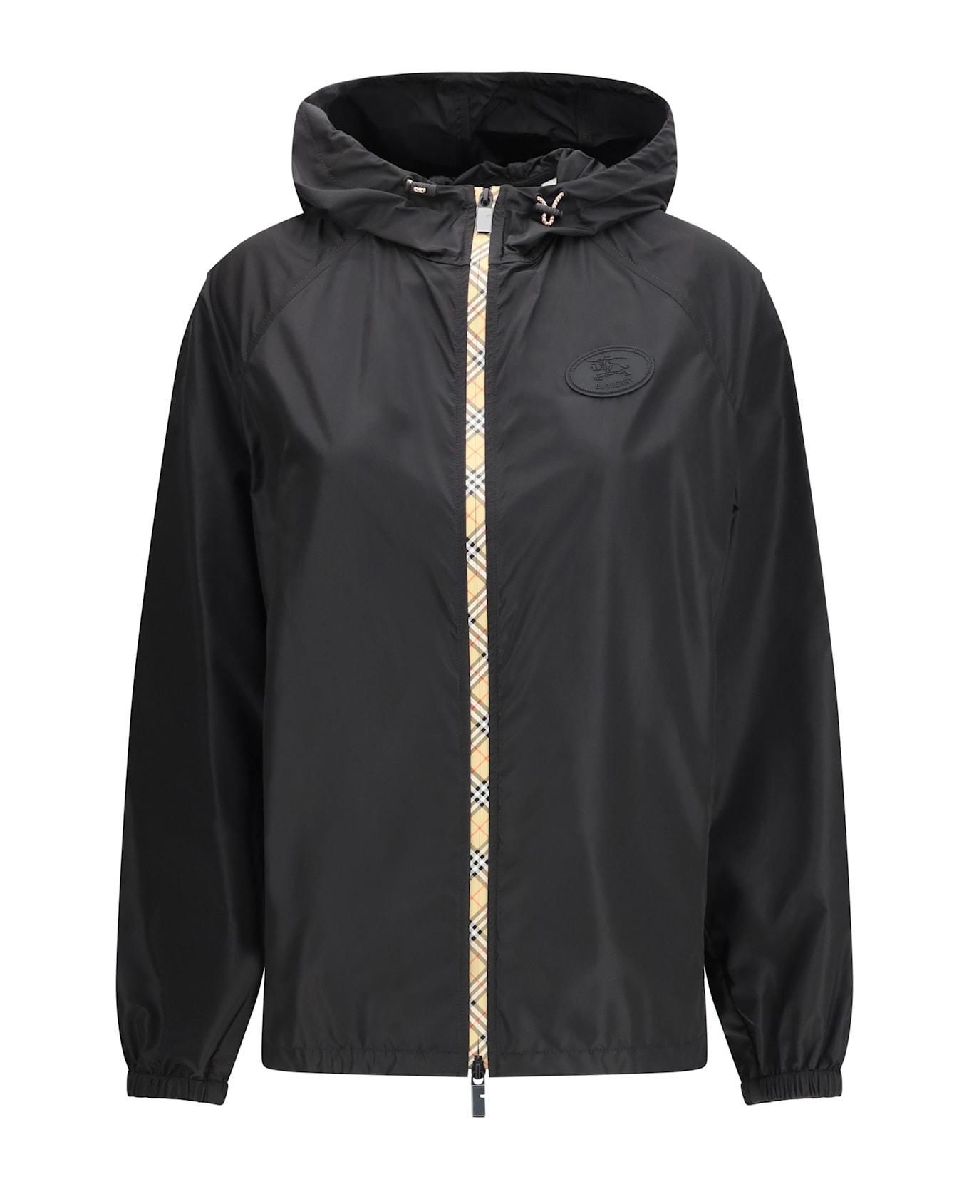 The check hooded nylon jacket by burberry is a technical and refined garment, ideal for protection and contemporary style. the double-slider zipper closure and side zip pockets offer practicality, while the hem and drawstring hood allow for an adjustable fit. elasticated cuffs ensure comfort and wind protection, and the silicone appliqué with the iconic equestrian knight design on the chest adds a distinctive detail of the brand. perfect for casual-chic looks with a touch of luxury. Composition: 100% % Polyamide