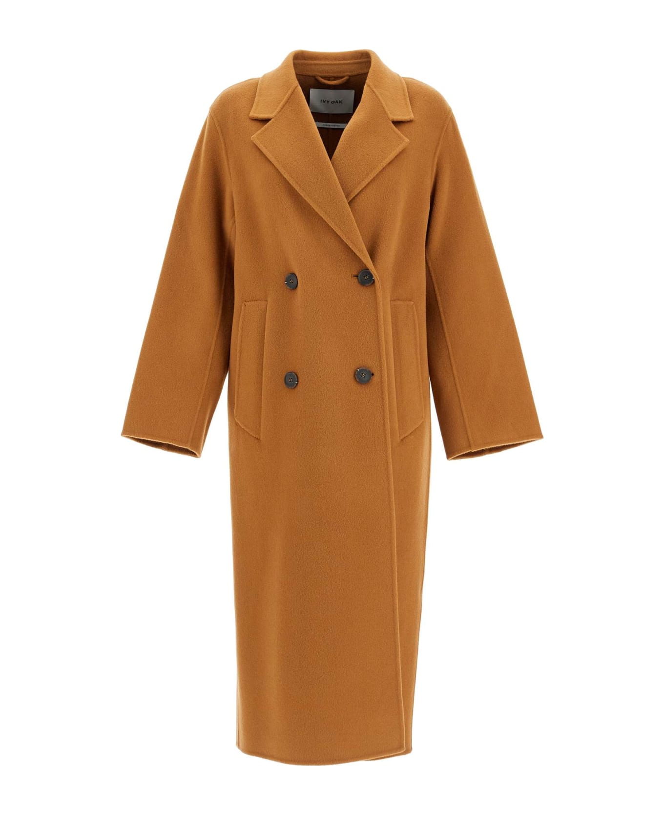 Long coat by Ivy Oak hand stitched in soft RWS certified wool, with double-breasted design and four-button closure. It features notch lapel, side welt pockets
