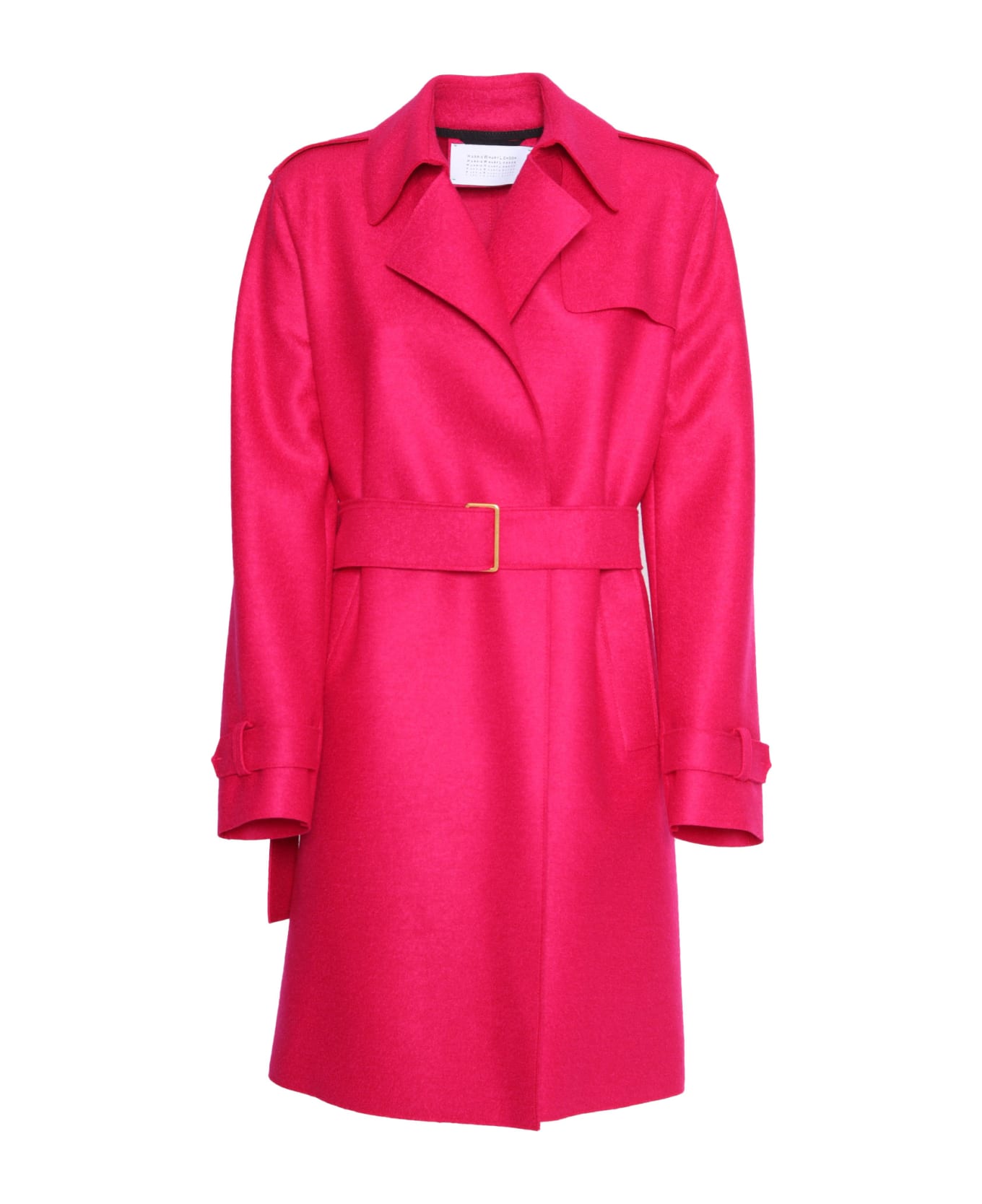 Pressed wool trench coat, lapel collar, matching belt closure, gold-tone buckle, sleeves with adjustable cuffs, rainproof panel, central vent on the back, slanted pocket Composition: 100% Virgin Wool