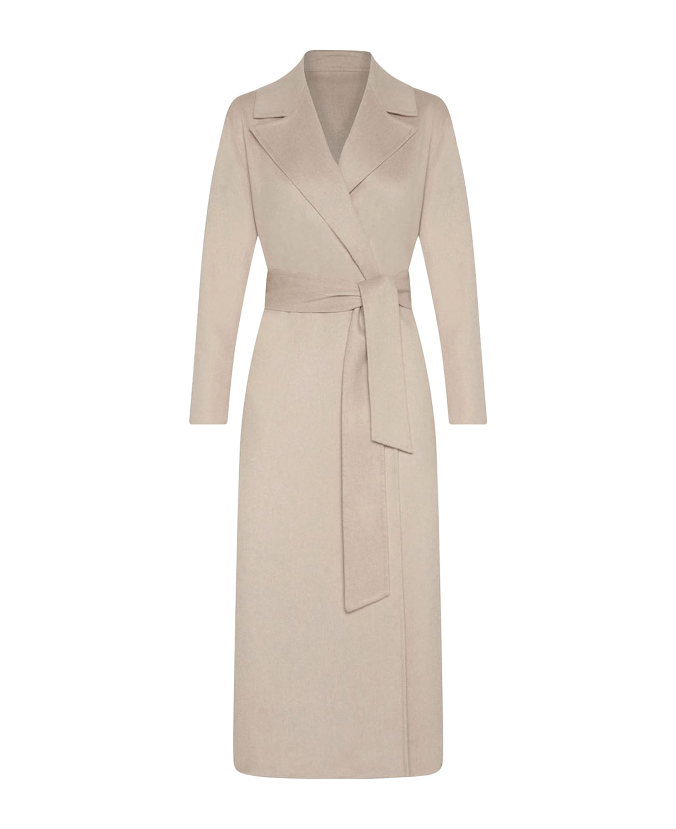 Beige coat in exclusive double cashmere, entirely cut and sewn by hand by our master tailors in Naples using procedures that stay true to our lengthy tailoring heritage. Double cloth combines two layers of a material during the weaving phase thanks to a unique construction method. This makes it possible for the resulting garment to have two completely different faces in terms of appearance and material. Unlined and lightweight, the coat has wide lapels, pockets set into the seams, and high lateral slits. An authentic tailoring masterpiece, the oversize fit brings comfort and freedom of movement to the silhouette. This overcoat is embellished by a decorative accessory: a matching belt that can be tied at the waist. An icon of feminine elegance, this Kiton coat is perfect for formal and informal occasions, bringing an elegant, sophisticated twist to casual ensembles. This Kiton garment speaks to refined women with strong, passionate character, attentive connoisseurs of sartorial traditions. To maintain the beauty of your Kiton coat, we recommend professional laundering and pressing.