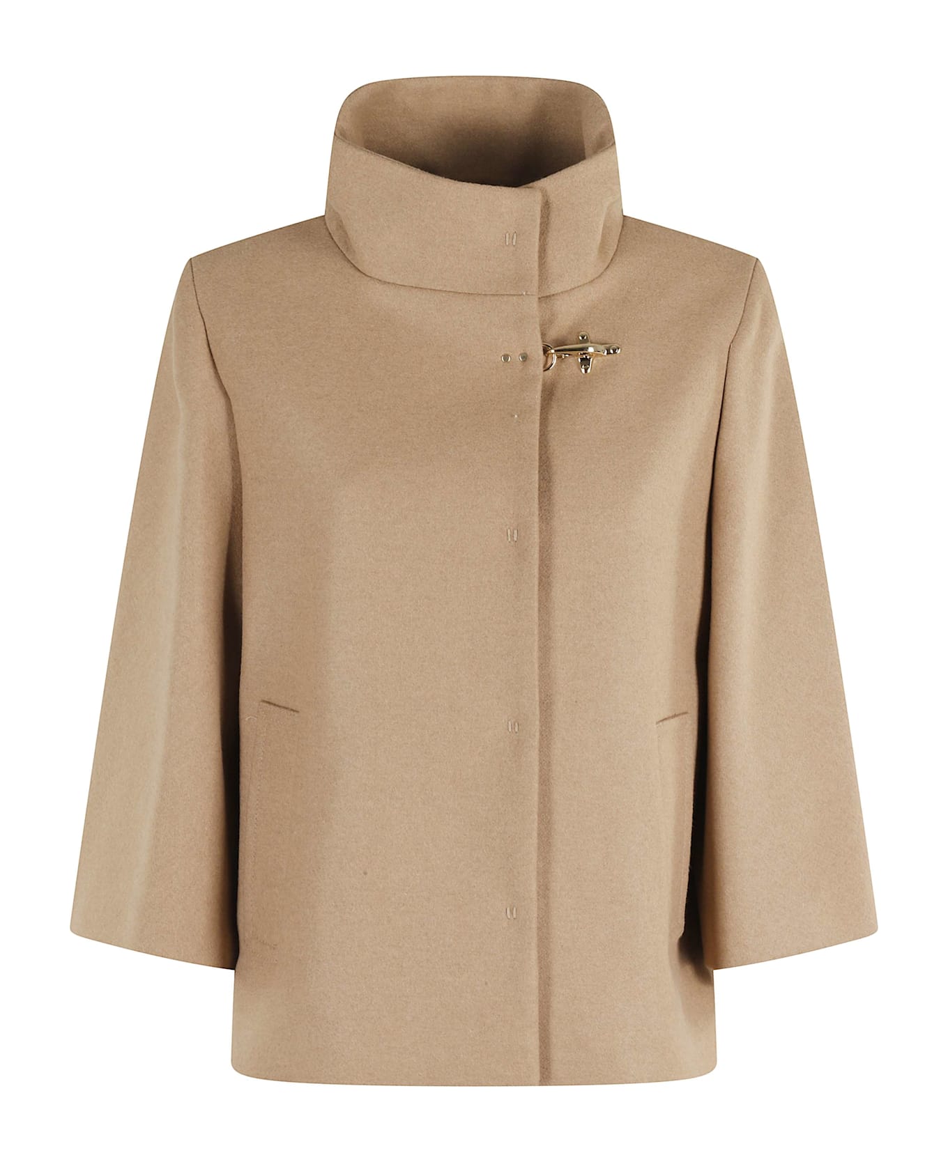 Short coat -Fay -Camel color -Long sleeve -Center button and hook closure -High collar -Side pockets