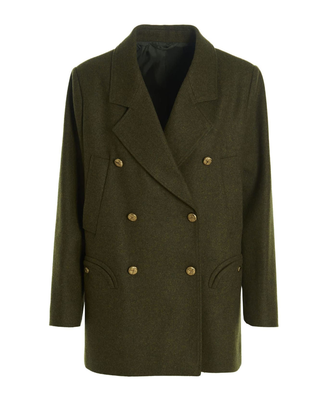 Wool double breast Denik coat featuring a button closure, pockets and long sleeves.