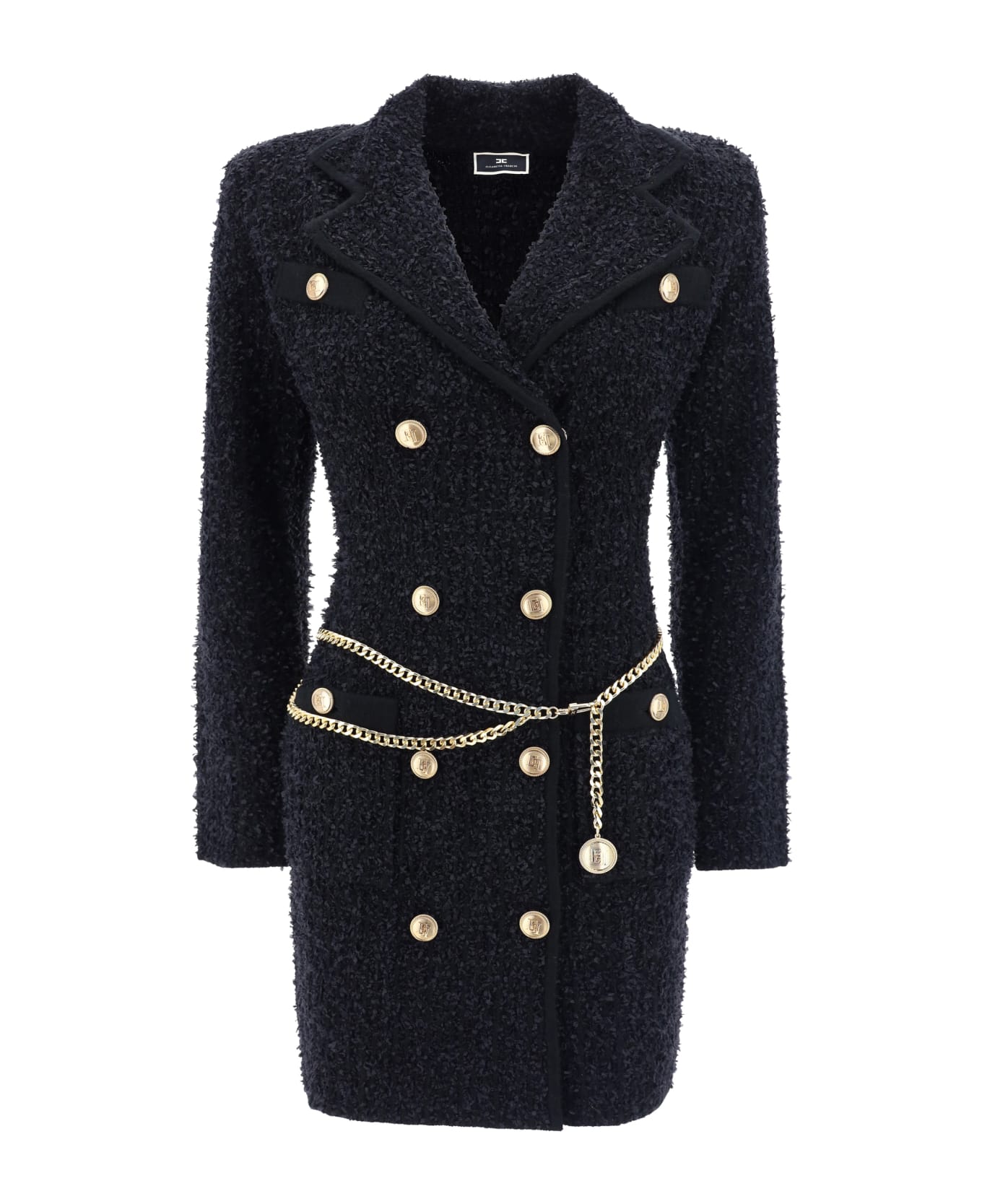 Dress by elisabetta franchi, wide classic lapels, two faux patch pockets on front, long-sleeved wrap-around design, front closure using logoed snap buttons, matching chain waistband, padded shoulders, two buttoned patch pockets on front, monochrome design, regular fit.