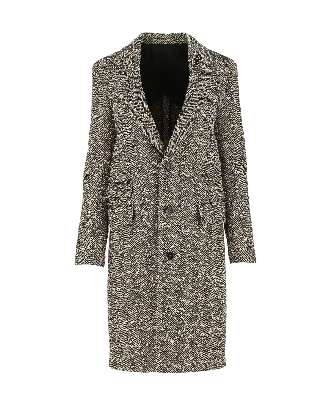 Embroidered Stretch Wool Blend Coat