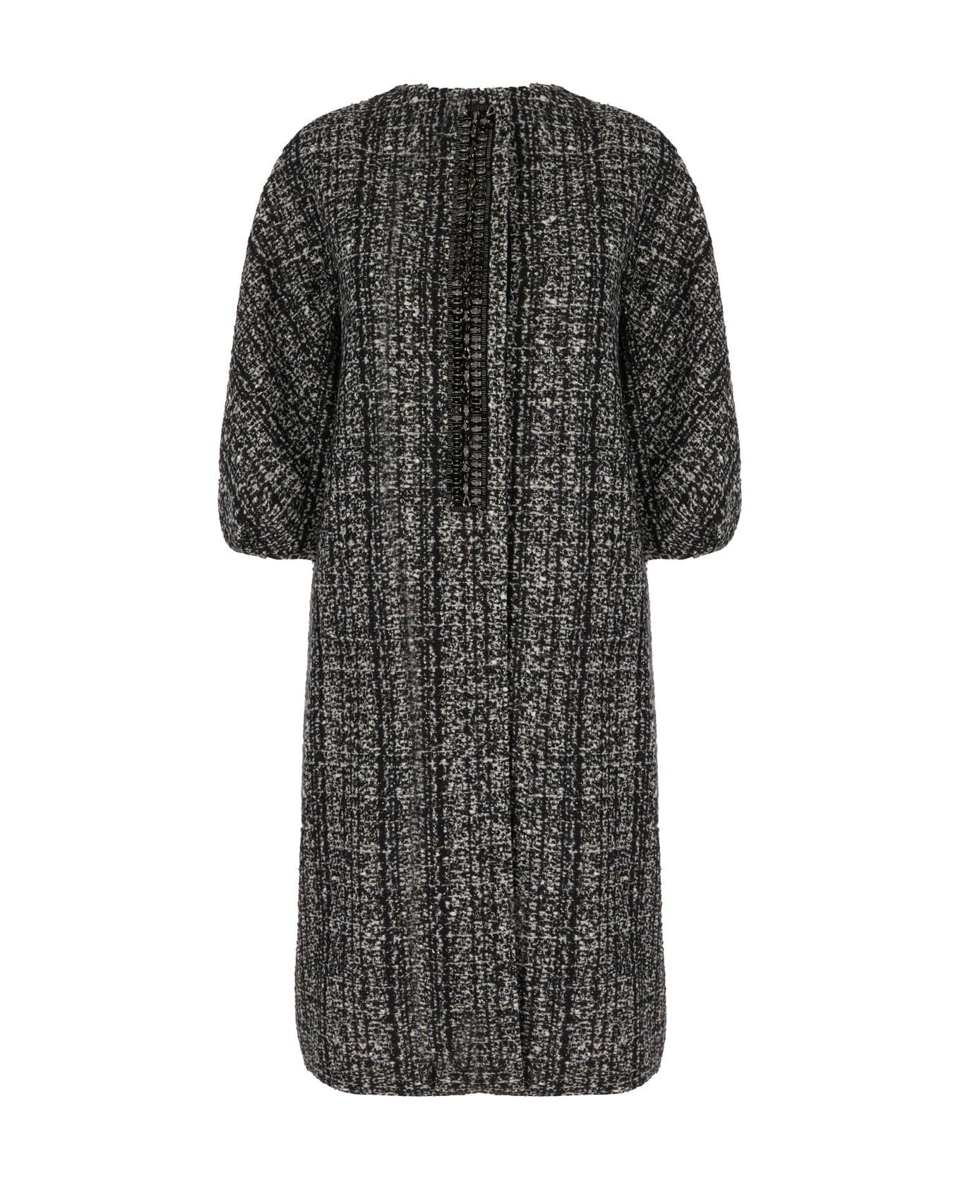 Coat realized in wool blend characterized by peculiar embroidery on the entire surface enriched by jewel detail at the front. -Round necklace -Single-breasted closure by concealed snap buttons -Two slit pockets at the front -Lined interior with a zip pocket