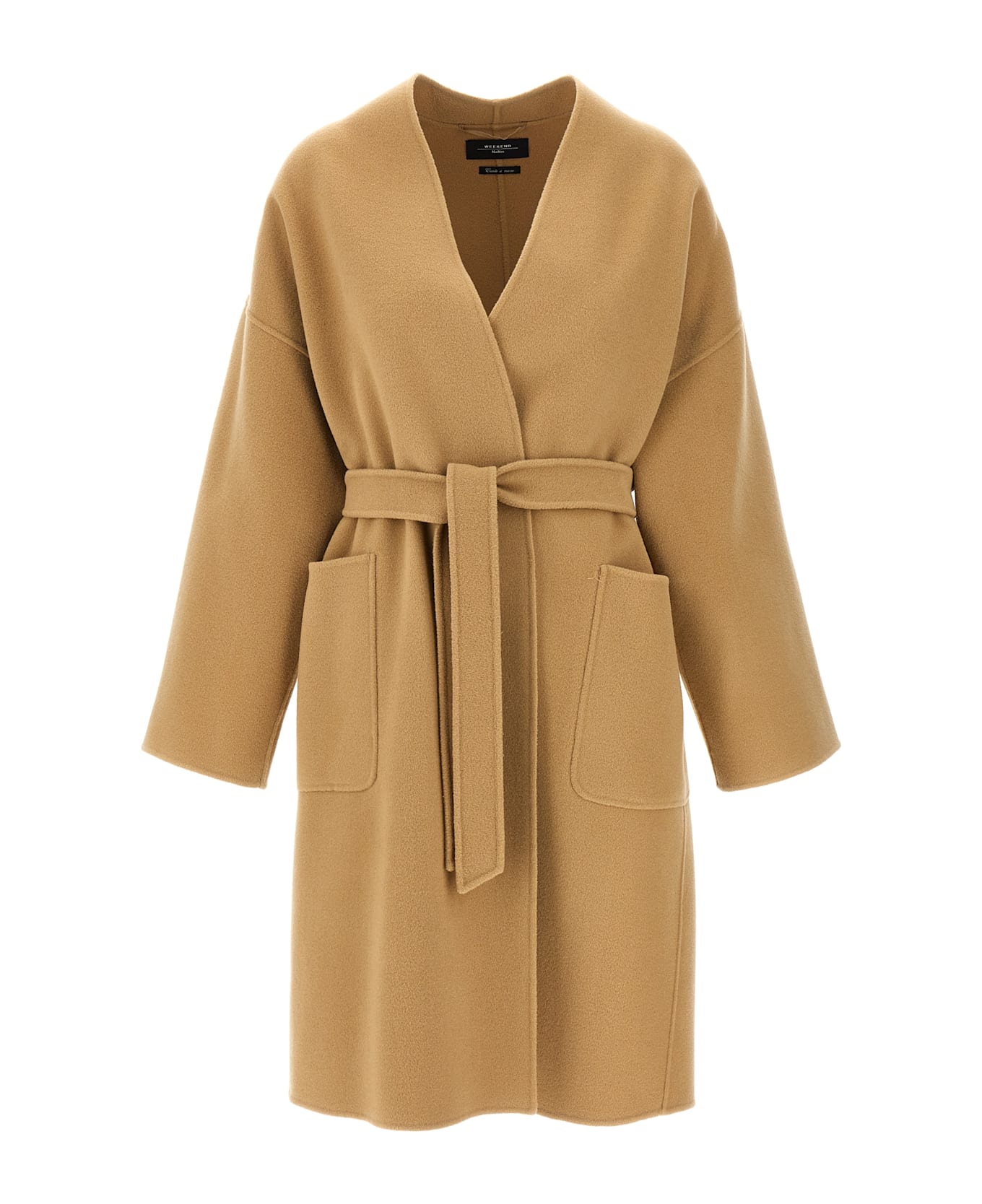 'Eris' pure wool double fabric coat with belt at the waist, pockets, back split.