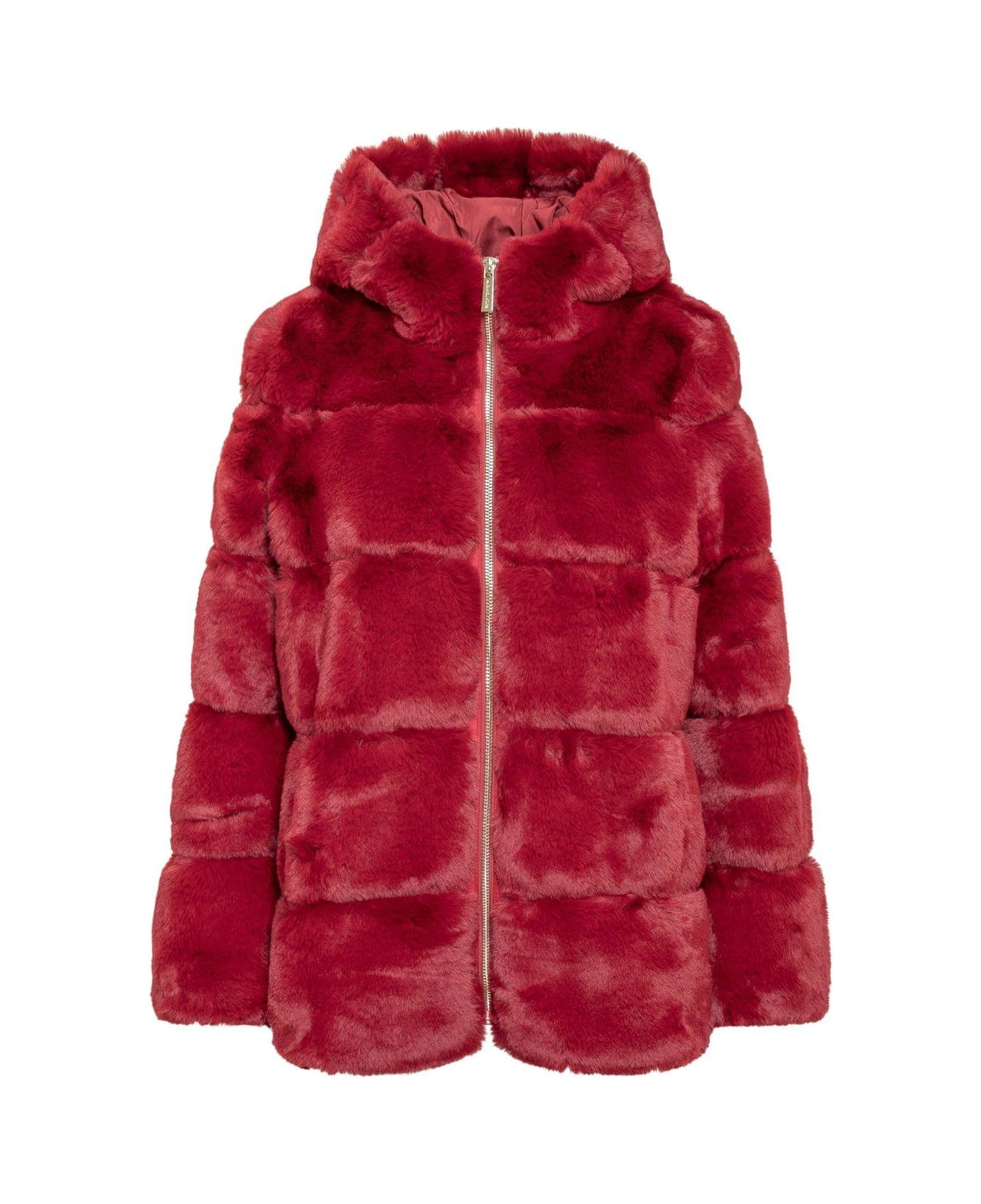 Quilted Faux Fur Hooded Coat