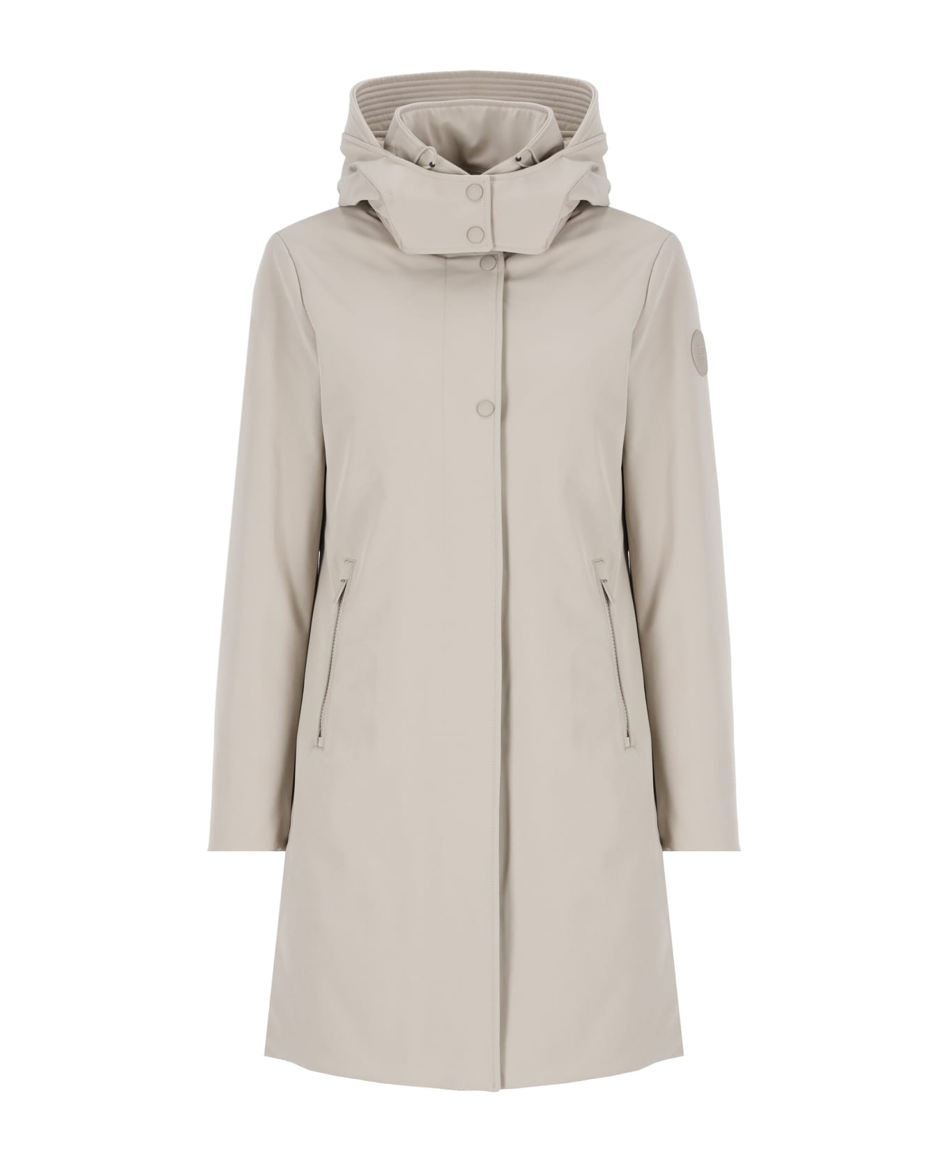 Firth Down Parka from Woolrich: - Grey Woolrich parka for woman - Removable zip hood - Long sleeves - Logoed patch at left sleeve - Two front zip pockets - Front zip and snap buttons fastening