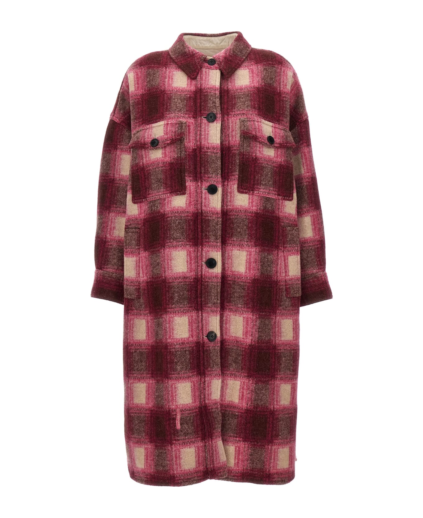 Check wool blend 'Fontizi' coat with long sleeves, button closure, pockets, and embroidered logo on the back.