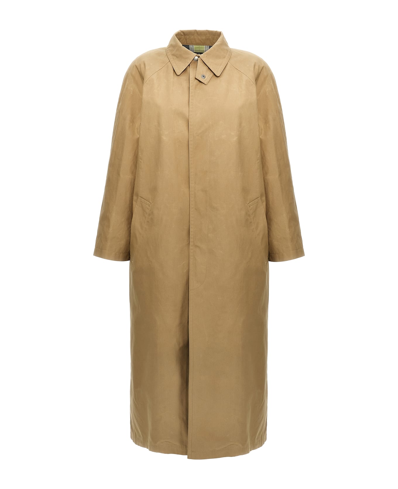 'Gaia' water-repellent English waxed cotton coat with tartan print lining, collar with underneck, snap button closure, pockets, long sleeves, back vent. Composition: 100% cotton
