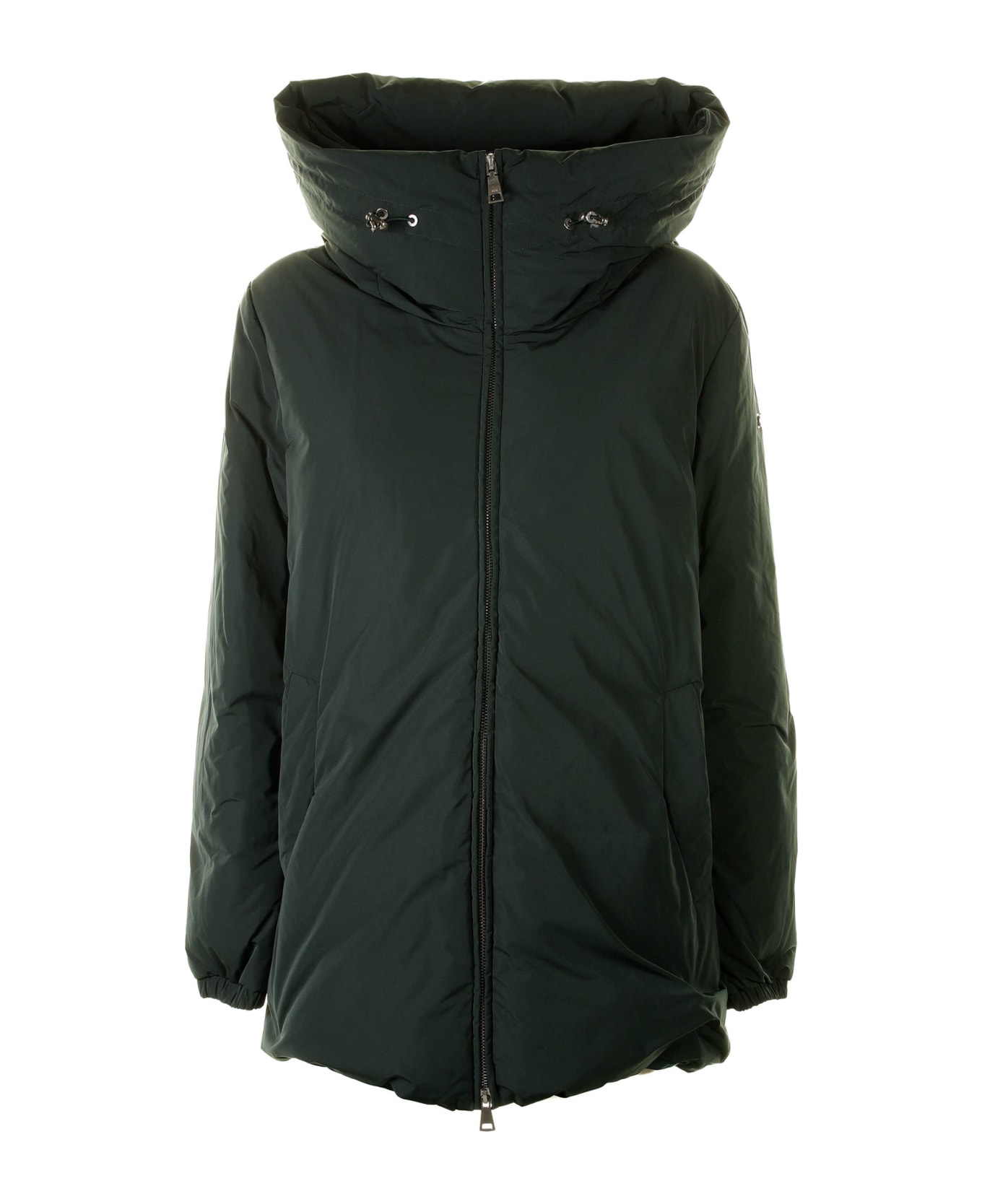 Green Women's Down Jacket With Maxi Hood And Zip