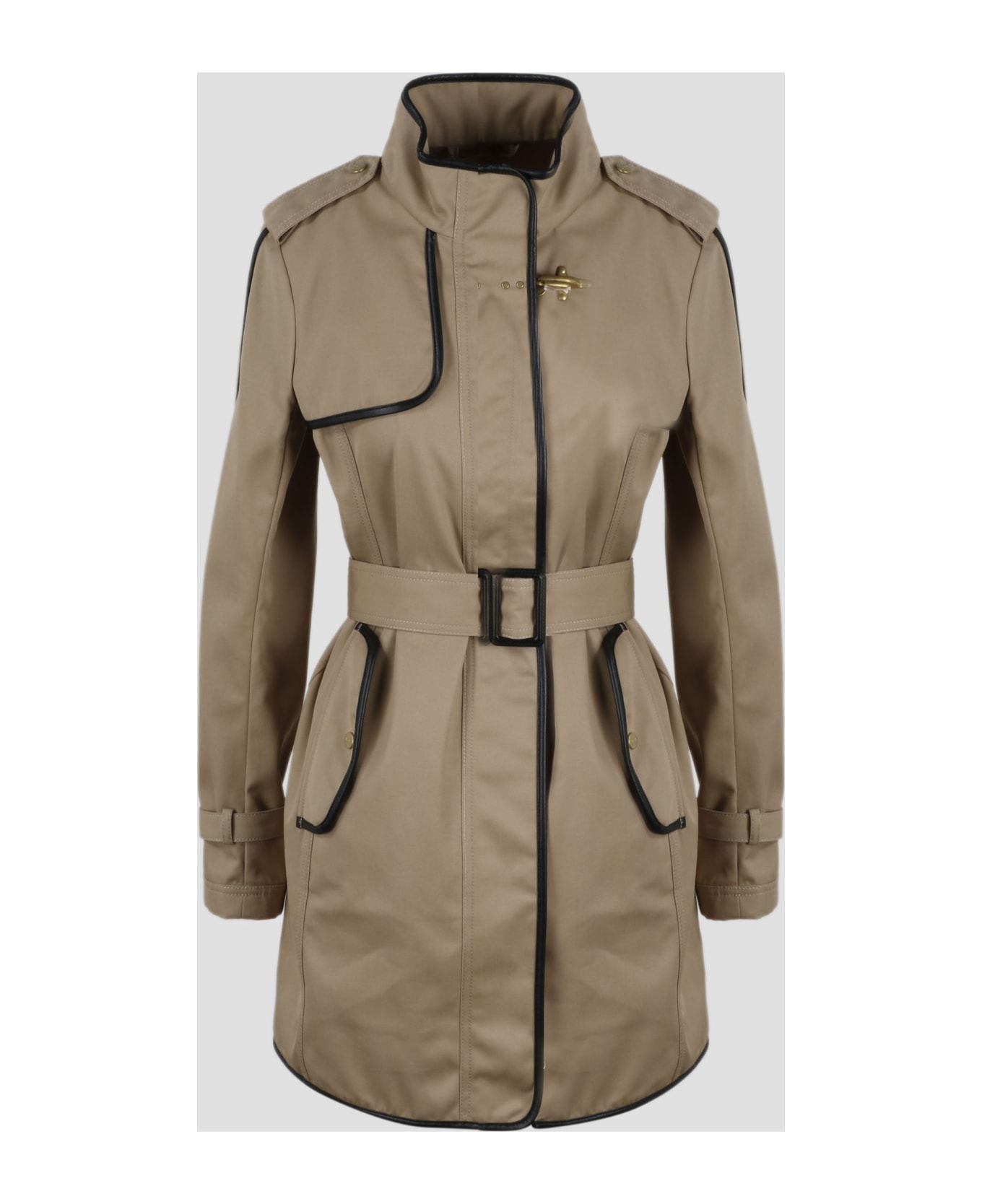 Fay trench coat in water-repellent technical gabardine inspired by the historic Virginia style. - SS23 - Regular fit - Shoulders tabs - Zip and invisible snap fastening - Distinctive Fay hook at the collar - Pockets with flap and snap - Sleeve bottoms with strap and buckle - Finished with contrasting piping - Made in Italy - 65% polyester, 35% cotton