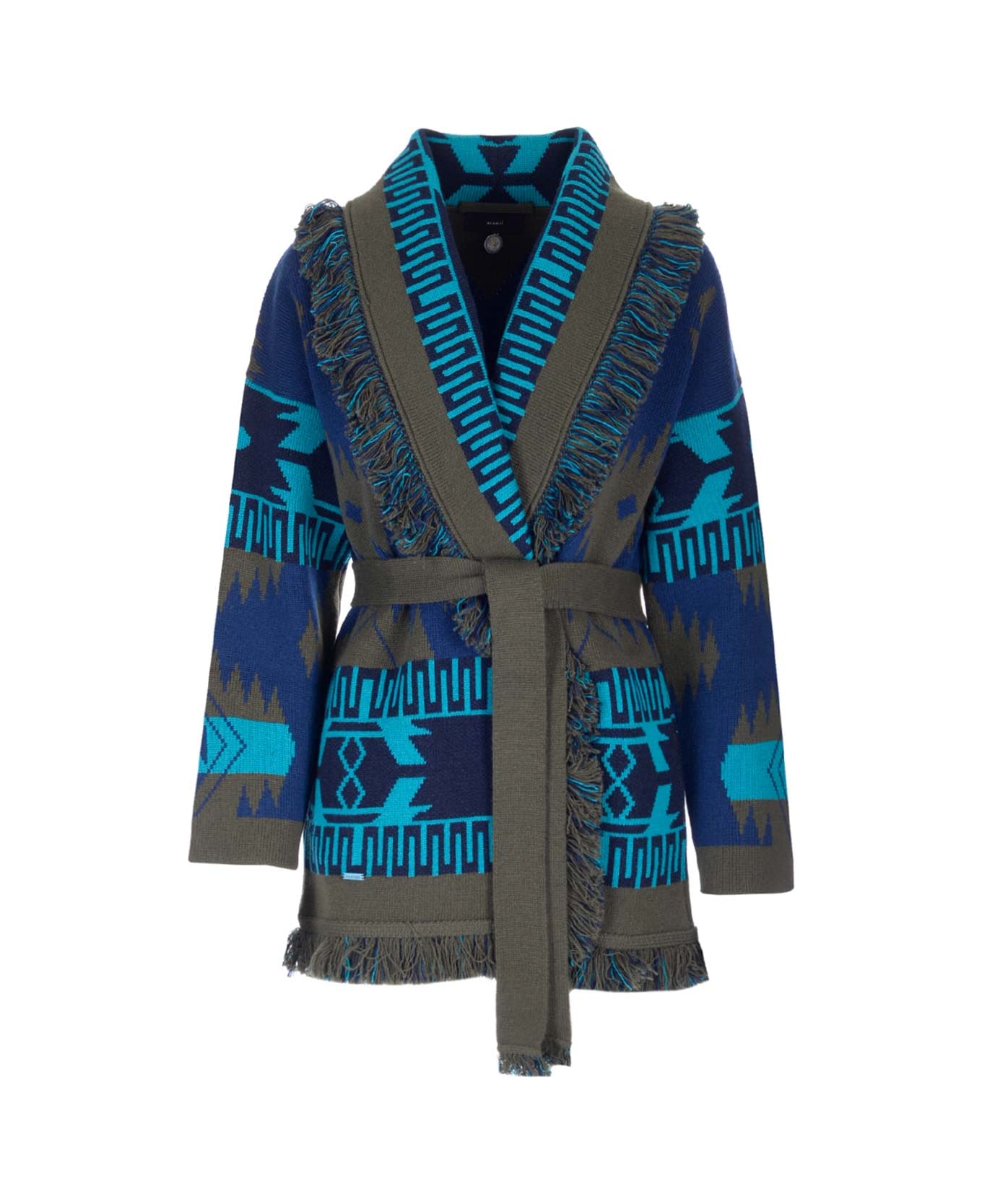 'Icon' jacquard cardigan from Alanui in cashmere, long sleeves, fringed hems, belt at the waist. Composition: FABRIC 100% CASHEMERE