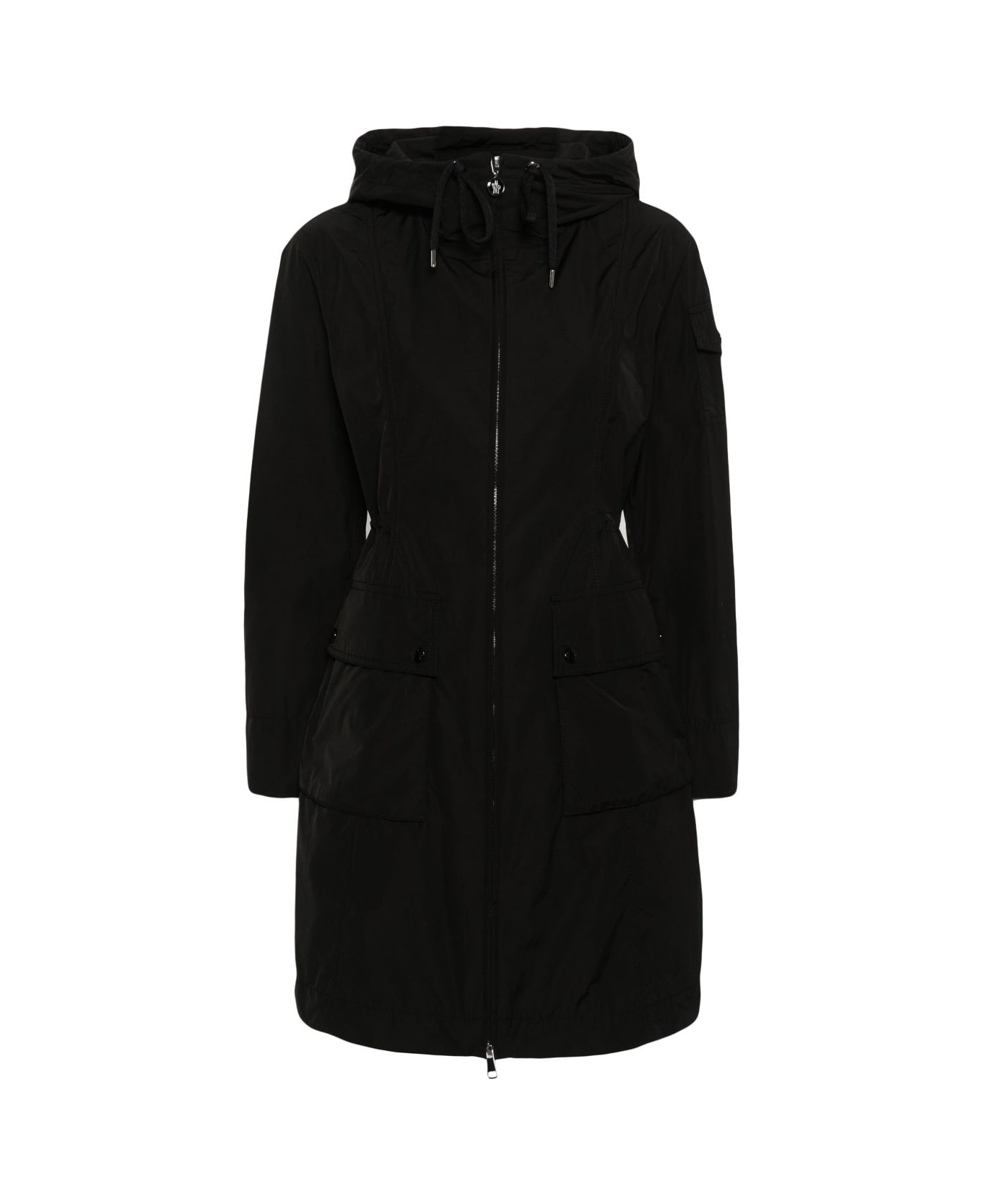 black technical poplin front two-way zip fastening drawstring hood stand-up collar long sleeves logo patch at the sleeve sleeve flap pocket drawstring waist two front patch flap pockets unlined branded zip puller logo-engraved buttons