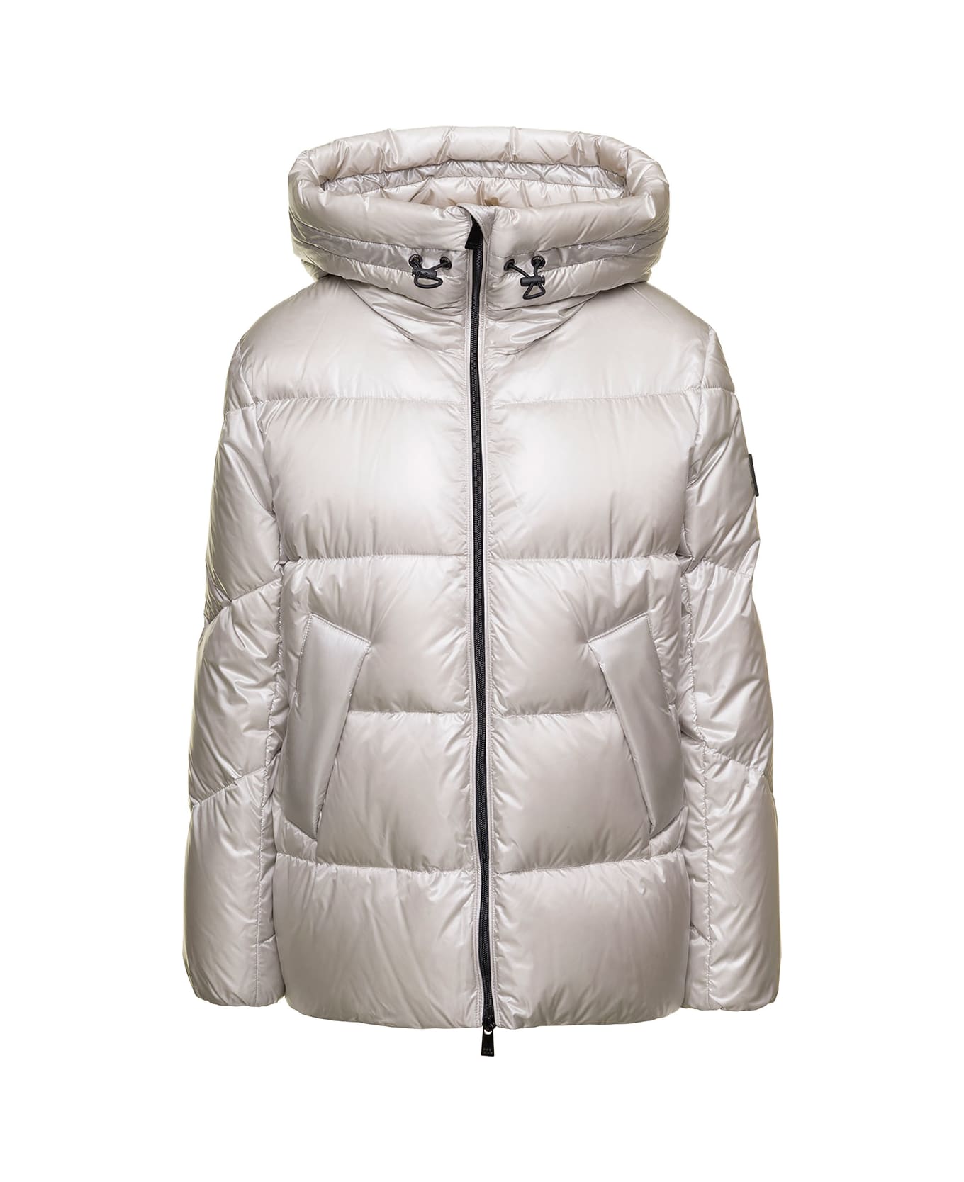 'larali' Ivory Down Jacket With Logo Patch In Nylon Woman