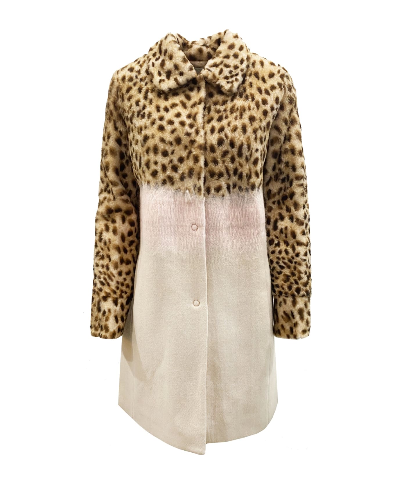 Leopard Sleeve Shearling Coat
