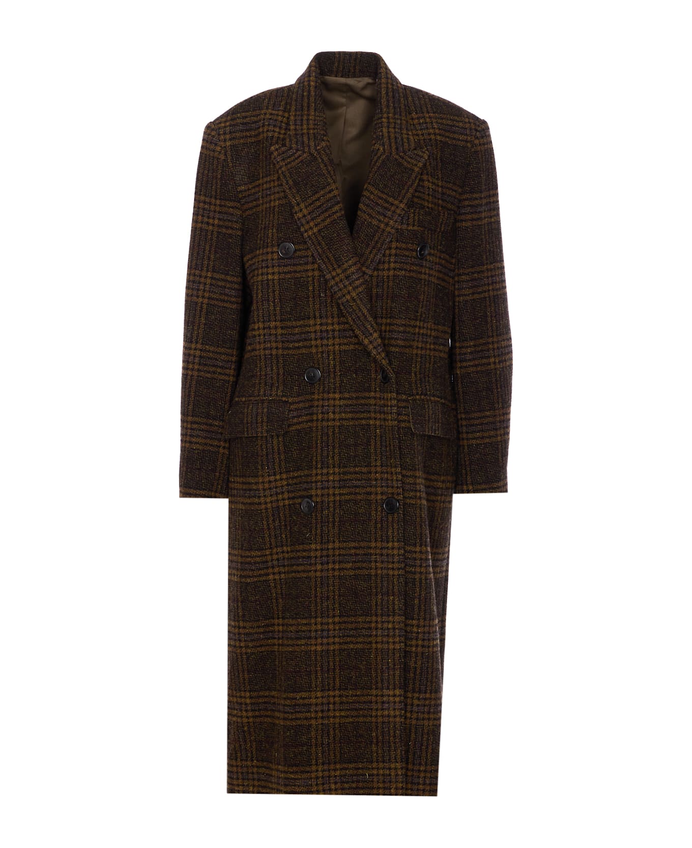 Isabel Marant Etoile khaki Lexana coat, frontal buttons closure, reverse, fronta pockets, checked