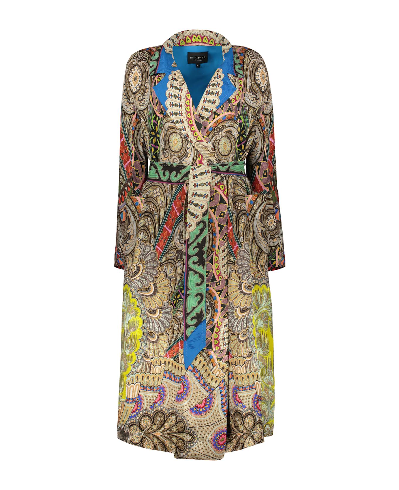 Lapel collar jacquard motif two front pockets coordinated waist belt side slits 41% silk, 30% silk, 70% viscose, 59% viscose Composition: 41% % Silk, 30% % Silk, 70% % Viscose, 59% % Viscose
