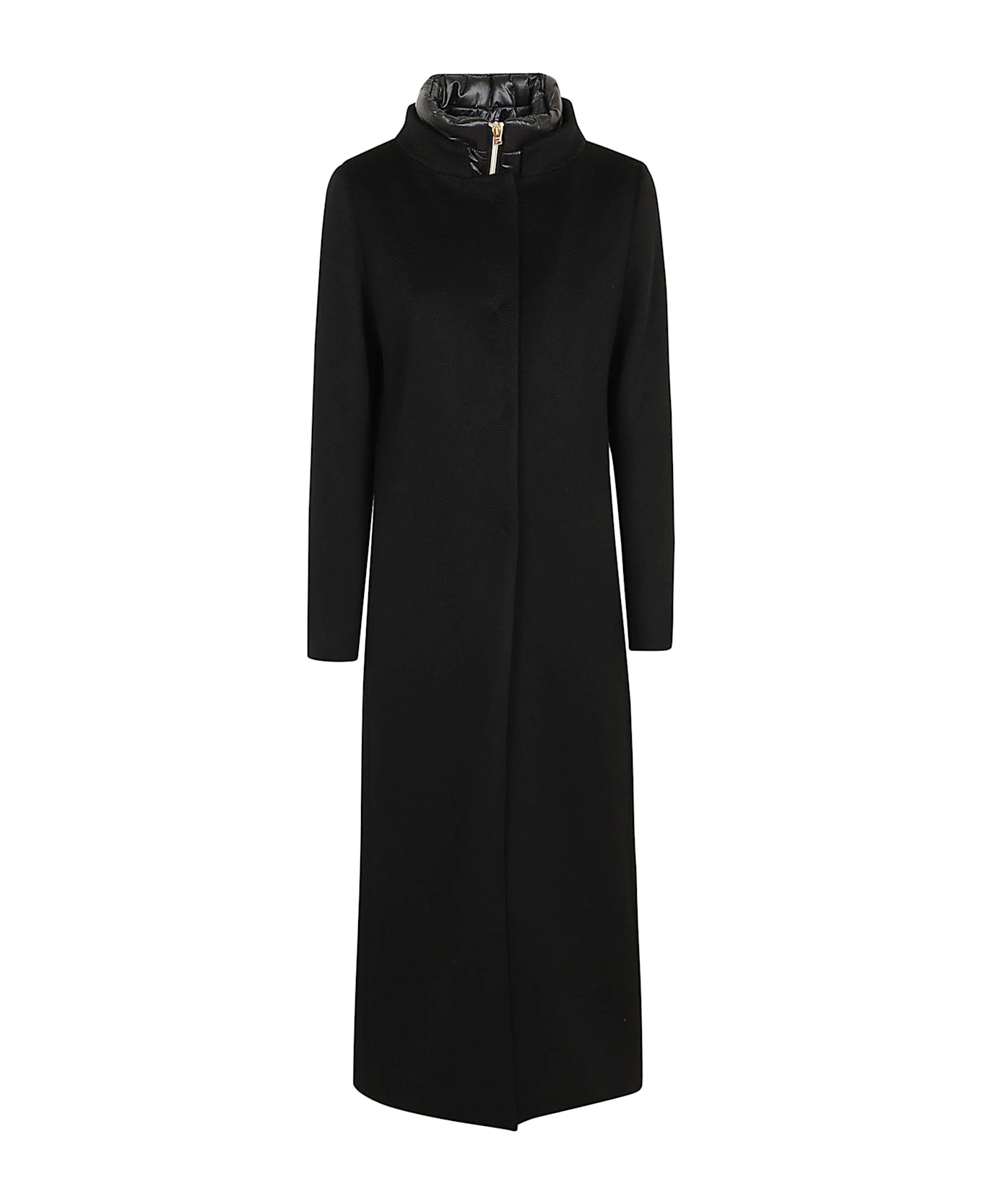 Pure cashmere coat BY HERNO. Featuring 2 in 1 construction, removable inner down jacket made in the iconic Ultralight Nylon. High collar; long sleeves; welt pockets on the sides; hidden button closure. Regular fit design, which follows the shape of the body, ankle length.