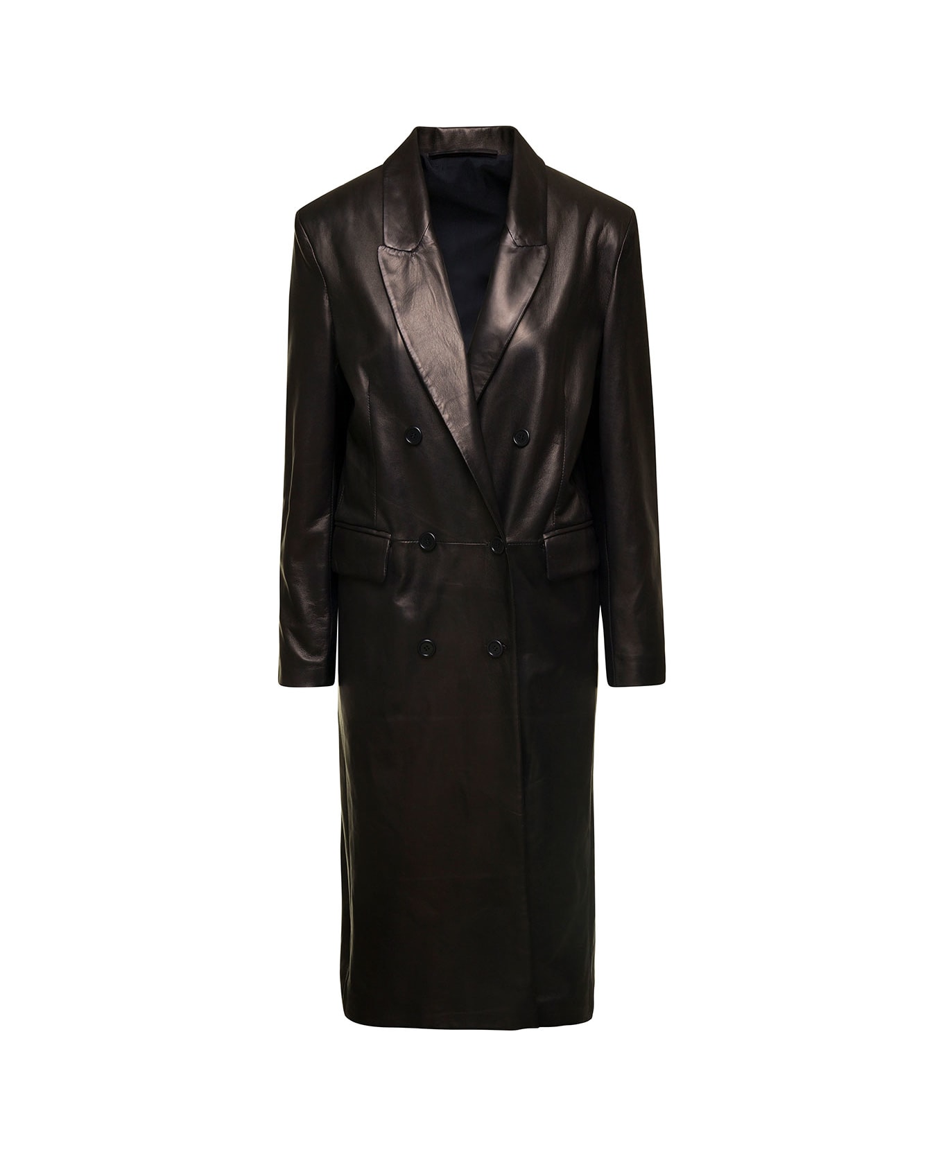 Long Double Breasted Leather Coat