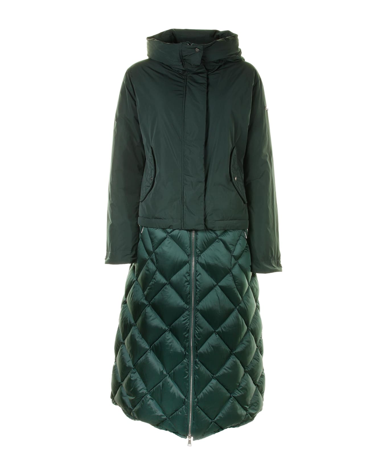 Long Green Quilted Down Jacket